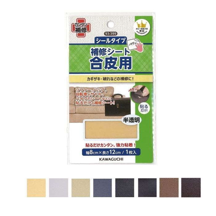 ソファー バッグ 自転車のサドル バイクのシートなどの合皮製品の補修に最適 貼るだけ簡単シールタイプ ソファーの破れや カギザキ 穴あきなどを補修。身近な皮製品の困ったに 補修シート■ 商品名KAWAGUCHI 合皮用補修シート■ サイズ巾8cm×長さ12cm 1枚入■ 素材表布 ポリウレタン 裏布 キュプラ80% ナイロン 20% 粘着樹脂 アクリル系樹脂■ 発送通常1-2営業日で発送いたします。ゆうパケットでのお届けです。 薄い封筒で届きますのでポストのご確認をお願いいたします。 ※※ご注文商品の変更・キャンセルはご容赦いただいております。 お客様都合の返品には対応しておりません。KAWGUCHI カンタン補修シリーズラインナップ!! 用途や素材の合わせてお選びください 普通地?厚地 普通地?厚地用補修布 普通地?厚地用補修布セット普通地?厚地用補修布テープ 薄地用 薄地用補修布 ストレッチ用 薄地ストレッチ用補修布 ジャージ用補修布 ジャージ用補修布セット ストレッチデニム用補修布 ストレッチチノ用補修布 靴下用用 くつ下用補修布 くつ下用補修パッチ その他 ナイロン用補修シート 合皮用補修シート 320円 税込 送料別 カードOK レビュー15件 旗の村松・手芸の村松 ![]() | ||