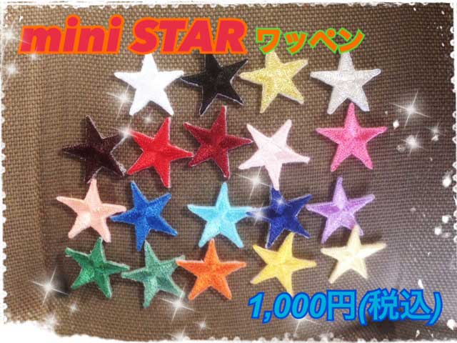 !! カラフル星ワッペン !! ★ミニ星ワッペン19枚セット★ 大人気カラー19色で小さな星ワッペンをセット販売します! 白、黒、金、銀、赤、エンジ、 ピンク、パッションピンク、ピーチピンク、 青、水色、紺、緑、エメラルドグリーン、 黄色、レモン色、オレンジ、こげ茶、パープル の19枚の他、お好きなお色もう1色おつけした、 合計20枚でお届け致します!! 買い物かごの上に、お色を選択する箇所 がありますので、プラス1枚分のお色を必ずご選択しご注文下さい その他星ワッペンはこちら ↓ ↓ ↓ ↓ ♥ Check Point!! サイズ 1つ 約1.8cm ワッペンタイプ アイロン接着加工 納期 ( 重要 ) ご入金確認後、お休みを除く3日以内の発送 ※ 土日、祝祭日がお休みになります ※ 注文状況、枚数により変わります 発送方法 (重要) 1,000円 税込 送料別 カードOK レビュー10件 刺繍家族 ![]() | ||