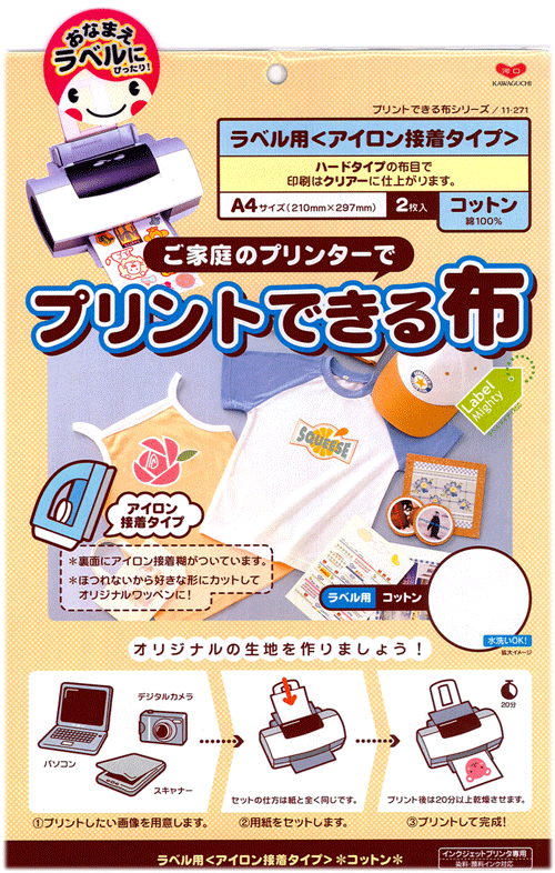 +++++++++++++++++++++++++++++++++++++++++ インクジェットプリンターで印刷できるコットンのシートです。イラストや写真画像をにじみなく印刷でき、洗濯しても色落ちしにくいシートです。糸目が細かい高品質の生地を使用していますので印刷はクリアーに仕上がります。 *裏面にアイロン接着糊がついています。 *ほつれないから好きな形にカットしてオリジナルワッペンに +++++++++++++++++++++++++++++++++++++++++ ★サイズ A4(210mm×297mm)2枚入り ★素材 布:綿100% 接着剤:EVA 紙:離型紙 990円 税込 送料別 カードOK レビュー8件 アットホビー@スタイリストゴトウ ![]() | ||