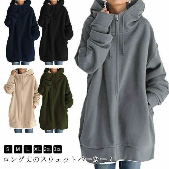 ロング丈のスウェットパーカー!ゆったりとしたサイズ感で楽に着用いただけます。お出かけにはもちろん、部屋着としても大活躍間違いなし!お尻まで隠れるので体型が気になる方にもおすすめです。 サイズ S M L XL 2XL 3XL サイズについての説明 【S】バスト114cm 袖丈50cm 着丈76cm【M】バスト118cm 袖丈50.5cm 着丈77cm【L】バスト124cm 袖丈51cm 着丈78cm【XL】バスト130cm 袖丈51.5cm 着丈79cm【2XL】バスト136cm 袖丈52cm 着丈80cm【3XL】バスト142cm 袖丈52.5cm 着丈81cm※サイズは平置き実寸になります。 サイズ表の実寸法は商品によって1-3cm程度の誤差がある場合がございます。 素材 ポリエステル 色 グレー ネイビー ブラック ベージュ カーキ 備考 ●サイズ詳細等の測り方はスタッフ間で統一、徹底はしておりますが、実寸は商品によって若干の誤差(1cm〜3cm )がある場合がございますので、予めご了承ください。 ●商品の色は、撮影時の光や、お客様のモニターの色具合などにより、実際の商品と異なる場合がございます。あらかじめ、ご了承ください。 ●製品によっては、生地の特性上、洗濯時に縮む場合がございますので洗濯時はご注意下さいませ。 ▼色味の強い製品によっては他の衣類などに色移りする場合もございますので、速やかに(脱水、乾燥等)するようにお願いいたします。 ▼生地によっては摩擦や汗、雨などで濡れた時は、他の製品に移染する恐れがございますので、着用の際はご注意下さい。 ▼生地の特性上、やや匂いが強く感じられるものもございます。数日のご使用や陰干しなどで気になる匂いはほとんど感じられなくなります。 2,710円 税込 送料込 カードOK レビュー1件 VIBLO ![]() | ||