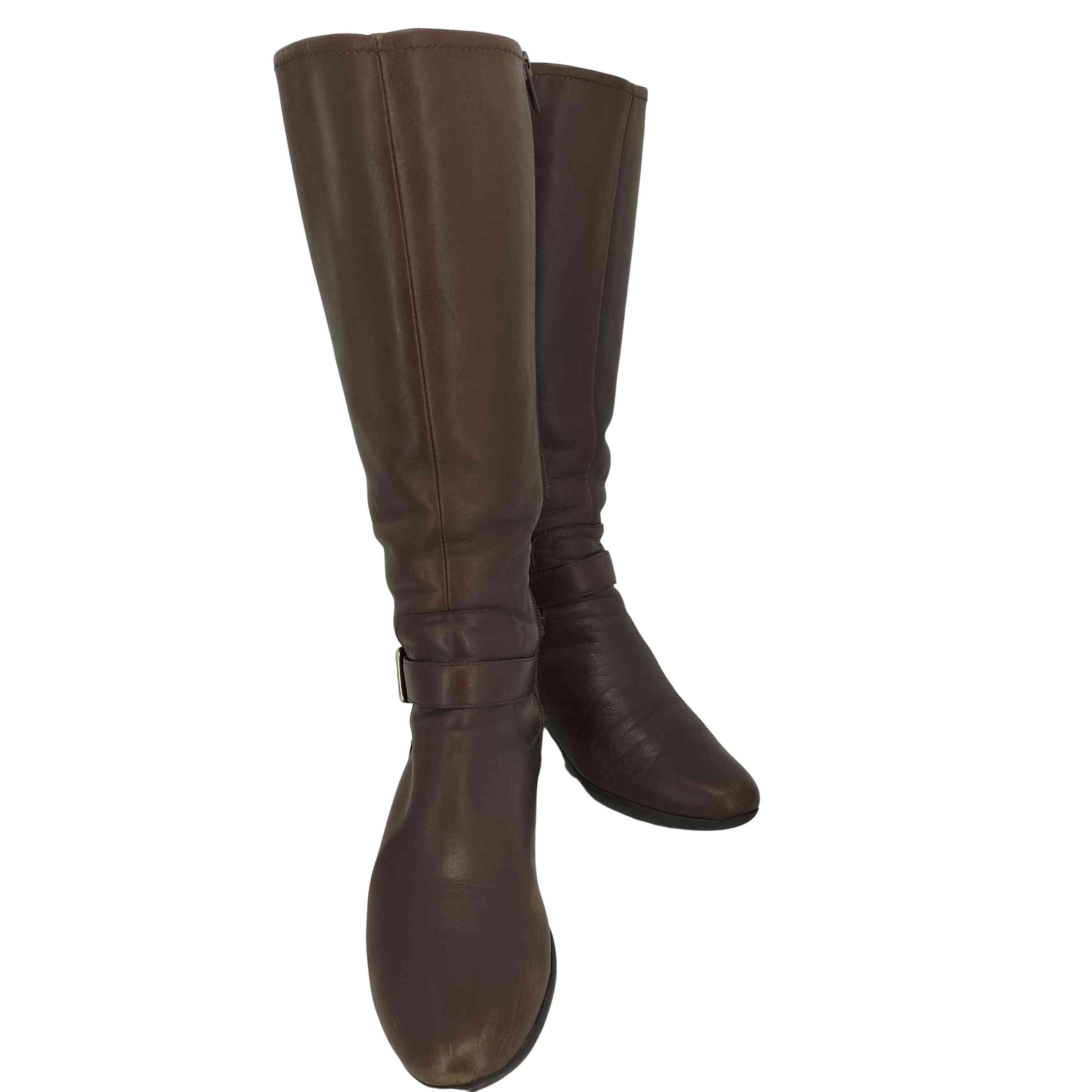 DETAILS BRAND SARTORE(サルトル) MODEL SR2837(レディース) ストレートタイプのハイヒールブーツ MATERIAL レザー COLOR CAPPUCCINO(ライトブラウン系) ACCESSORIES オリジナルボックス (保存袋はありません。付属品や箱には輸送の際に生じた汚れやダメージ、または日焼けがある場合がございます) CONDITION 新品未使用 ・サイズ36の左足甲に1cm程の薄いキズあり(画像参照) ・サイズ36.5の両足の筒部分に2mm程度の小キズが沢山あり(画像参照) ・サイズ37の筒にヨレあり(画像参照) SIZE ●サイズ35.5(女性サイズ23cm相当) 高さ約46cm(内ヒール約8.5cm) 履き口内側約34cm、ふくらはぎ外側約35cm、足首外側約28.5cm、 アウトソール約23cm、アウトソール横幅約8.2cm ●サイズ36(女性サイズ23-23.5cm相当) 高さ約47cm(内ヒール約8.5cm) 履き口内側約35cm、ふくらはぎ外側約36cm、足首外側約28.5cm、 アウトソール約23.3cm、アウトソール横幅約8.3cm ●サイズ36.5(女性サイズ23.5cm相当) 高さ約47cm(内ヒール約8.5cm) 履き口内側約35cm、ふくらはぎ外側約36.5cm、足首外側約29cm、 アウトソール約23.7cm、アウトソール横幅約8.5cm ●サイズ37(女性サイズ23.5-24cm相当) 高さ約48cm(内ヒール約9cm) 履き口内側約35cm、ふくらはぎ外側約36.5cm、足首外側約29.5cm、 アウトソール約24cm、アウトソール横幅約8.6cm ●サイズ37.5(女性サイズ24cm相当) 高さ約48cm(内ヒール約9cm) 履き口内側約35.7cm、ふくらはぎ外側約36.8cm、足首外側約29.5cm、 アウトソール約24cm、アウトソール横幅約8.8cm アウトソール全長はあまり参考にされないようお願い致します。ハイヒールブーツのため内側に入っているため、小さいめな実寸値となっております。 STAFF COMMENT サルトル(SARTORE)のストレートロングブーツ/ハイヒールブーツSR2837です。 サルトルはシルエットがきれいで、とてもお勧めな一点です。 フランスのブランドとなりますが、靴で有名なイタリアの工房にて生産されております。 革質も大変上質で一度履いてしまえば他のブーツは履けないくらい、足にフィットします。 ※当店ではドイツの正規店より店主自ら買い付けをしておりますので、日本未入荷商品が大変豊富です。 ABOUT THIS BRAND 「世界でもっとも美しい乗馬ブーツ」といえばこのブランド!パリ発1959年に創業の老舗シューズメーカー、SARTORE(サルトル)です。 フランス人姉妹が手掛ける、その上質な本革の使い方やデザインの素晴らしさ、美しさには世界的に定評があります。 特に有名なのが、バックベルトブーツ、乗馬ブーツ(ジョッキーブーツ、ジョッパーズブーツ)やウエスタンブーツです。履き心地もとてもよく、また履いた姿もとても上品にそしてエレガントに見えることから、特に大人の女性、セレブやマダムなどを虜にし、「憧れのブーツ」と思う女性も多数います。 老舗のデザインと伝統のイタリア職人技術が融合した芸術的なサルトルのブーツはまさに「一生モノ」です。 ATTENTION ※サイズは複数計測して平均値を出しておりますが、多少誤差が生じる事がございます。ご理解下さい。 ※サイズがご不明な場合はオーダー前にお問合せください。 ※お客様のPC環境により、商品画像と実際とでは若干色が異なる場合があります。 89,100円 税込 送料込 カードOK micce楽天市場店 ![]() | ||