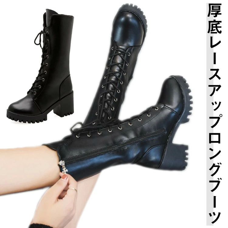 889. ロングブーツ レースアップブーツ 厚底ブーツ レディース 黒 ブ 美脚 ファスナー付き 厚底 編み上げブーツ 痛くない サイドファスナー 歩きやすい ヒール レースアップ レースアップ レディース ... 3,150円 税込 送料込 カードOK ららショップ ![]() | ||