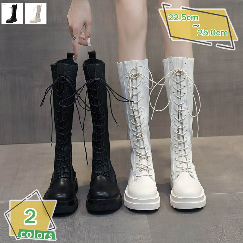 表地:合成皮革、ニットメイン素材:pu、ニット■ヒール:5.5cm 筒丈:33cm 履き口:24cm カラー:ブラック/黒色、ベージュ/白色 サイズ:22.5cm-25.0cm 素材:合成皮革+ニット 留め具:スリップオン ゆっくり履きたい、幅広、甲高の方はワンサイズアップをおススメします。■ストレッチのニット素材があるため、普段は紐を結んだり解いたりといった手間もかからず、着脱がしやすく便利で、大人可愛いロングブーツが毎日の通勤や通学、オフィスワークにもおすすめです。■ ... 10,806円 税込 送料込 カードOK サイバーショップ01 ![]() | ||