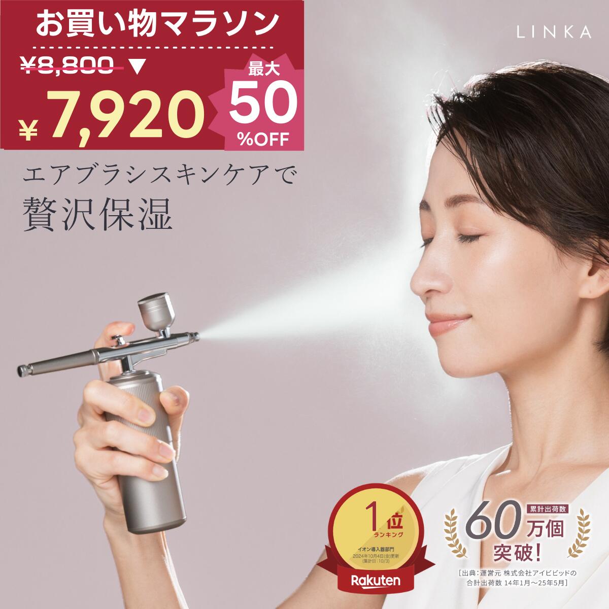 【LINKA crystal mist リンカ クリスタルミスト エアースプレー】 酸素×エクソソームの次世代エイジングケア(※) スキンケアの概念が変わる 3分セルフエステ (※)=年齢に応じたケア 【商品の特徴】 ●クリスタルミストとは毛穴より小さい0.021mmのマイクロミストを噴射することで、肌の隅々まで潤いを届けるセルフエステの美容機器です。 酸素と美容液剤が絡まりエアニードル™となってまるでエステ帰りのツヤ肌を実現。 ●クリスタルミスト スキンケアシリーズは、肌細胞研究でも注目のエクソソームが配合されています。 エアースプレーとスキンケアをセットでご使用頂くことで、ご自宅でも簡単にセルフエステが叶います。 今までのスキンケアの常識を越えた体験を。 エクソソームとは!? エクソソームとは、肌細胞内で情報を伝達するために必要な袋のことです。 その中でも、ヒトサイタイ血由来幹細胞エクソソームは、近年、効果の高いと言われていた脂肪・骨髄由来幹細胞と比較し、成長因子の含有量が2倍以上、EGFは約8倍含まれています。 最先端の細胞研究の成果を濃縮した次世代エイジングケア。(※) より未来に自信の持てる肌へ。 (※)=年齢に応じたケア 【ご使用方法】 1.本体を専用充電コードから外し、電源スイッチを押してランプの点灯を確認します。 充電中は赤色のライトが点灯しています。充電が終了するとライトが緑色に変わります。 本体からコードを取り外すと同時にライトは消えます。 2.専用化粧品・水道水または精製水をメジャーカップに注ぎます。 用途/ご希望の量によって大小のメジャーカップを使い分けてください。 メジャーカップには指定の目盛り線以上の液体を注がないでください。 ※ディープクレンジングとしてご使用の場合は前記載の専用化粧水/水または精製水をご使用ください。 ※オイル美容液などの粘度の強いトリートメント剤はノズル詰まりの原因となりますのでご使用はお控えください。 ※容器内で液体を長時間放置せず、ご使用後はすぐにきれいに洗ってよく乾かして収納してください。 3.下記の要領に従ってミストの量を調整し、お手入れ箇所にスプレーします。 3-1.メジャーカップの蓋を開けます。 3-2.上記の液体を注ぎます。 3-3.ミスト調整つまみを前後に動かしてお好みのミスト量でキープします。 3-4.酸素調整ボタンを左右に回して酸素の量を調整してください。 3-5.お手入れしたい部分にスプレー口を向けてスプレーしてください。 ※熱湯は火傷、容器の変形の可能性がございますので絶対にお止めください。 ※推奨スプレー距離は10~15cmです。 ※スプレーの際、ミストを吸い込まないようにご注意ください。むせる可能性がございます。 4.トリートメント作業を終了させる場合、再度電源スイッチを押してランプの消灯を確認します。 ※本製品は湿気や水滴に対しての生活防水設計です。本体部分は防水設計されておりますが、USBケーブル差込口は防水となっておりませんので差込口に水がかからないようにご注意下さい。 ※水没厳禁 ※専用USBケーブルは防水設計ではありません。 ご使用が終わりましたら、必ず毎回P13~お手入れ方法・保管に従ってお手入れ・保管してください。 また充電の際も上記に従ってお手入れの後充電してください。 【プレゼントとしても】 高級感のあるパッケージと他にはない新感覚の美容機器。 大切な方へのギフトとしてもおススメです。 誕生日 バレンタイン ホワイトデー 卒業祝い 入学祝い 母の日 父の日 敬老の日 出産祝い 引っ越し祝い クリスマスプレゼント にも最適です! さらにメーカー1年保証をお付けしておりますので安心してお買いお求めください。 【注意事項】 ■次の症状に該当する方は使用しないでください。 ●心臓疾患の方 ●高血圧の方 ●出血性疾患・血友病疾患などの血液異常の方 ●疲労の激しい方・体調が特にすぐれない方 ●飲酒や薬を服用中の方 ●知覚・痛覚異常のある方 ●糖尿病等の疾患により皮膚異常がみられる方 ●アレルギー体質の方 ●ウイルス性のイボ、黒皮症の方 ●アトピー性皮膚炎および皮膚病の方 ●美容機器の使用後に肌・頭皮にトラブルのあった方 (肌や身体のトラブル原因になる可能性) ●妊娠初期の不安定期から出産直後(授乳中)までの方 ●生理中の方 ●成長過程の方 ●幼児や成長期の子供、および自分で意思表示できない方 (ホルモンバランスが不安定なため肌トラブルの原因に なる可能性) ●温度の感覚が自覚できない方 (やけど・感電・けがの原因になる可能性) ■以下のような部位には使用しないでください。 ●肌に傷や湿しん・はれものなどのある部位 ●皮膚炎・過度の日焼けなど、皮膚に異常のある場合 ※肌や身体に痛み・異常を感じたらすぐ使用を中止する (事故や肌・身体のトラブル・体調不良の原因) ■次のような方は、医師に相談のうえ、ご使用ください。 ●今まで重い病気をした方 ●病院やクリニックで医師の治療を受けている方 ●骨折、整形な