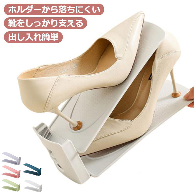 ●下駄箱内のスペースを有効活用できるデザイン●1足分のスペースに2足収納可能●4段階の角度調節ができる機能付き●片足分のスペースで1足を収納できる2段収納のシューズホルダー●女性靴専用のスリムサイズで省スペース●靴の接地面にはすべり止め、かかと部分には落下防止ストッパー付き●靴片足分のスペースに片足づつ2段収納のシューズホルダー●4段階のH調整でヒールの高い靴にも対応・サイズ: W76xD265xH85mm折りたたみ時・材質: PP・カラー: グレー・セ... 4,472円 税込 送料別 カードOK むさしのメディア 楽天市場店 ![]() | ||