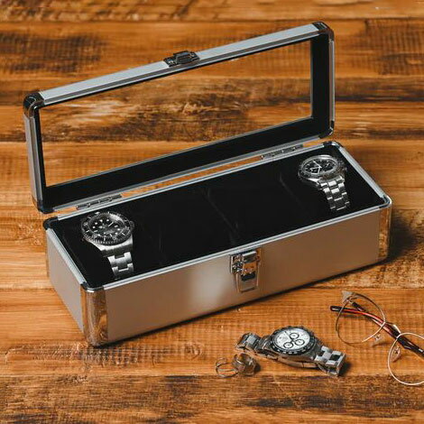 【商品説明】お気に入りの腕時計を、美しく保管。高級感のあるデザインなのでインテリアとしてもおすすめです。サイズ:横29.5cm・奥行11.5cm・高8.5cm 重量:698g 仕切り:横6.3cm・奥行9.3cm・高6.0cm 素材:アルミ・ガラス 機能:4本収納【送料について】北海道、沖縄、離島は送料を頂きます。エスプリマ プレミアム タイムボックス4本用 シルバー4本用 ブラック8本用 シルバー8本用 ブラック 13,200円 税込 送料別 カードOK リコメン堂生活館 ![]() | ||