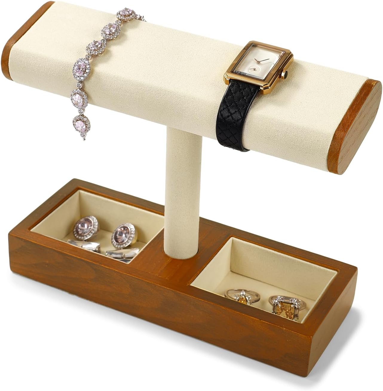 置き面はマイクロファイバー素材を採用された木製腕時計スタンド。【4本用?2本用?2サイズあり】外側にマイクロファイバー素材が腕時計を傷や摩耗から守ります。内部は丈夫で重さがあるの木材を使用しております。さっと取り出せて、腕につけることができる、毎日使う腕時計の置場所としてとても使いやすいです。腕時計以外ブレスレット、バングル、ネックレス等も収納できるスタンドです、お家のアクセサリーの整理やお店での展示など幅広くご利用いただけます。 サイズ 4本用(大) ... 2,480円 税込 送料別 カードOK 考福ショップ ![]() | ||