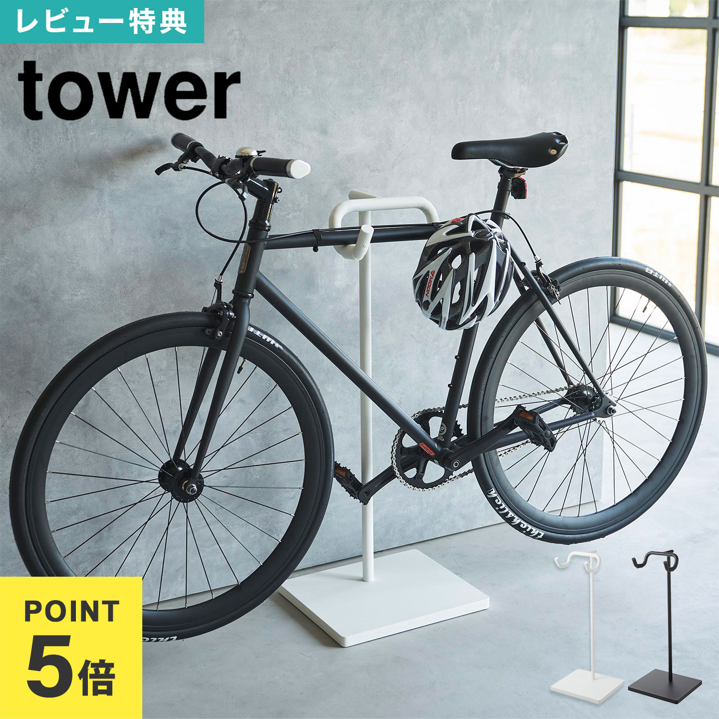 Details 【自転車スタンド】 室内でスポーツ自転車をすっきり飾って収納できるスタンド。一本支柱のスリムな構造で、スポーツ自転車をスマートに浮かせてディスプレイすることができます。ハンガー部は自転車のフレーム形状によって角度を調節でき、フレームをキズつけないためにシリコーンの滑り止めが付いています。ハンガー部にはヘルメットを掛けておくことも。玄関やリビングで、ハンガーに掛けるだけで、お気に入りのスポーツ自転車を省スペースにディスプレイして収納できます。 ブランド名 tower / タワー JAN 4903208019651/4903208019668 品番 1965/1966 サイズ 約W38×D33×H94cm 耐荷重 ハンガー部:12kg 重量 約6.1kg 素材 本体:スチール(粉体塗装) キャップ:ポリプロピレン 滑り止め:シリコーン 付属品 六角レンチ(大)、六角レンチ(小) 対応自転車 トップチューブのある一般的なスポーツ自転車 備考 組立式 生産国 中国 ご注意 ※表記サイズより、多少の誤差があることがございます。 ※商品の画像はできる限り実物に近づけるよう配慮しておりますが、お使いのモニターやご覧になる環境によりましてはカラーの見え方に差が出る場合がございます。ご了承くださいませ。 関連キーワード 山崎実業 自転車スタンド タワー 1965 1966 tower 公式 室内 自転車 収納 ディスプレイ ラック スポーツバイク ロードバイク 自転車ラック サイクルスタンド スリム 玄関 ヘルメット収納 インテリア バイクスタンド 屋内 おしゃれ シンプル ホワイト ブラック 自転車ホルダー 自転車置き サイクルラック 浮かせる 吊り下げ ディスプレイスタンド 室内保管 駐輪スタンド 1台用 自転車収納 壁掛け 滑り止め付き 北欧 モノトーン 白 黒 スチール 壁寄せ 自転車掛け 家具 スポーツ自転車 室内用 自転車収納 山実 やまじつ ヤマジツ やまざきじつぎょう たわー towerシリーズ ブランド インテリアブランド yamazaki インテリア収納 北欧 Tower Bicycle Standお気に入りの自転車を掛けるだけ。お部屋に飾りながら収納できるお部屋の中や玄関に浮かせてディスプレイできる、スリムでシンプルな構造です。愛車が映え、美しく収納できます。 フレームの形状に合わせてハンガー部分の角度が調整可能ハンガー部分が回転式になっており、自転車フレームの形状に合わせて角度が調節できます。 \ こちらもおすすめ / 9,900円 税込 送料別 カードOK hauhau ![]() | ||