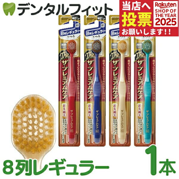 ザ・プレミアムケアハブラシ 8列レギュラー ヘッドの幅さらに広く、よりなめらかな磨き心地を! 濃密65穴の歯ブラシ! 横に1列増やすことで、より歯を広くカバーできる8列ワイドヘッドを実現。 個装サイズ 38×230×20mm 個装重量 約20g 内容量 1本 製造国 日本 柄の材質 本体部:ポリプロピレン ラバー部:SEBS 毛の材質 飽和ポリエステル樹 毛のかたさ ふつう 耐熱温度 80度 カラー ゴールド・ワインレッド・ロイヤルブルー・パープル ※色はお選びいただけません。【ご注意(免責)事項】当店では、サイト上に最新の商品情報を掲載するよう努めておりますが、メーカーの都合等により、商品規格や仕様(容量・成分・パッケージ・原産国など)が予告なく変更される場合がございます。このため、実際にお届けする商品と商品ページ上の情報表記が異なる場合がございますので、ご使用前には必ずお届けした商品の商品ラベルや注意書きをご確認ください。また、商品情報についてページ表記以外の詳細が必要な場合は、メーカー等にお問合せください。 482円 税込 送料別 カードOK レビュー2件 歯科医院専売品のデンタルフィット ![]() | ||