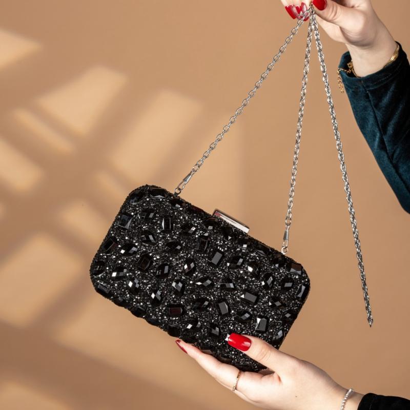 ・素材: PU・使用シーン: 日常使い・裏地素材: ポリエステル・スタイル: ボックス型バッグ・形状: 横長方形・人気要素: ラインストーン、チェーン・開閉方法: ロック式・硬さ: 硬め・カラー展開: ブラック、シルバー 5,631円 税込 送料込 カードOK 花りぼん ![]() | ||