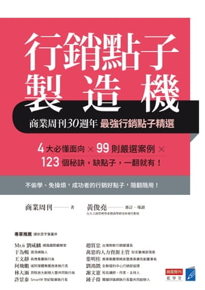 <p>要解決問題、想改良?品、該提升銷售、還得拉住客?,苦無靈感怎麼??<br /> 《商業周刊》送上30年精選?妙點子!<br /> 4種行銷面向?99則實例?123個秘訣,<br /> 缺點子,一翻就有!</p> <p>★他們這樣想行銷點子</p> <p>餐廳離峰時段沒人?→?試吃會,衝人氣増翻?率<br /> 平平都是薯條→薯條三兄弟讓人吃不到,更想要<br /> 煎餅易破裂缺角→「碎煎餅」專賣,迎合務實消費者<br /> 線上打牌,銀髮族反應慢?→「神來也」改程式,出牌時間自己選</p> <p>?聲喧嘩的年代裡,有些人異軍突起、有些商品萬年... 1,037円 税込 送料込 カードOK 楽天Kobo電子書籍ストア ![]() | ||