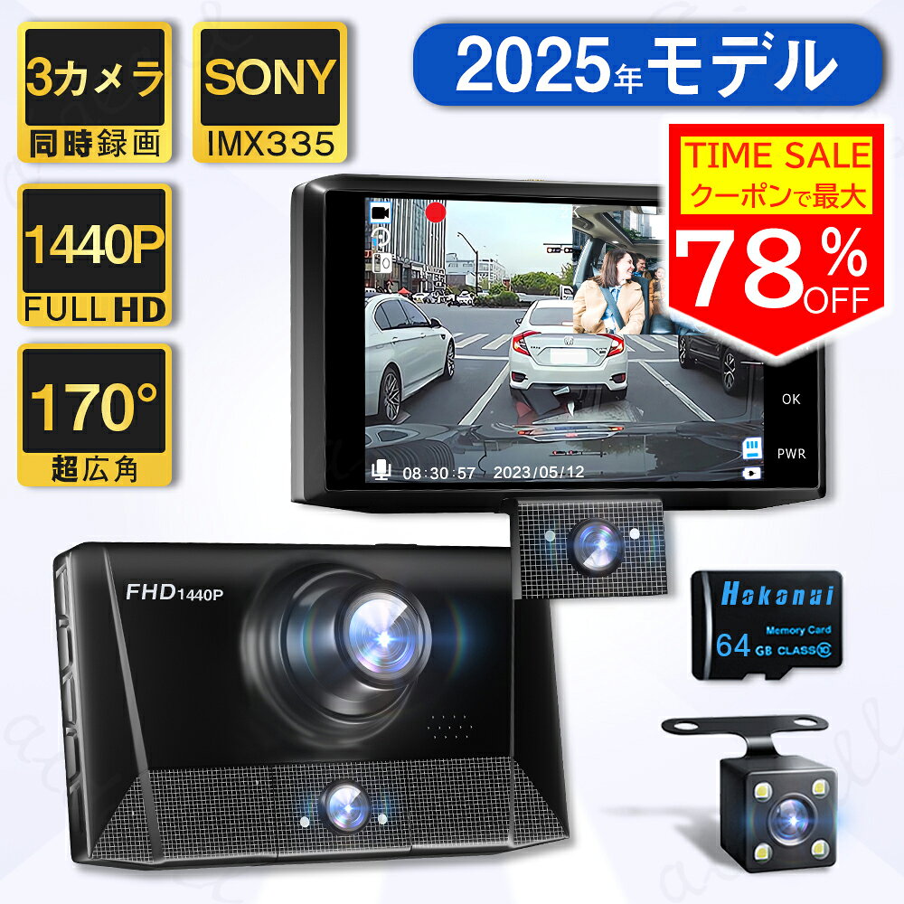 ●商品特徴 ・前方、車内、後方 3カメラ搭載しております。 ・3カメラ同時録画対応、万が一も見逃さない! ・液晶モニターは4インチの大型サイズ!撮影したデータはその場で再生可能! ・HDR機能で夜間や明暗がある場所でも鮮明に撮影可能! 電源投入後自動録画機能 エンジンスタートで録画開始 ●商品詳細 ・前方カメラ画素数 : 動画約200万画素、静止画1200万画素 ・車内/後方カメラ画素数:動画約30万画素、静止画30万画素 ・レンズ視野角:前方170°、車内120°、後方90° 液晶モニ... 7,980円 税込 送料込 カードOK レビュー21件 得選館 ![]() | ||