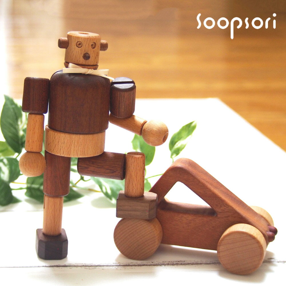 !ご注意!必ずご確認ください 木材は噛み続けると破損の原因となり危険です。スプソリの木のおもちゃは舐めても安心な無塗装ですが、何でも口に入れてしまう時期の赤ちゃんに長時間与えることはおやめください。 歯固めなど0歳向けの噛むことを前提としたおもちゃ以外は大人の目の元でお使いください。 ■内容/サイズ■ 木製ロボット:背17cm、身幅9cm、奥行5cm 車おもちゃ(3種類から1つ):11cm×7cm×6.5cm ■重さ■ 約0.5kg(パッケージ含む) ■対象年齢の目安■ 6ヶ月〜 ■使用材料■ 木材、ゴム(内蔵) ■製造■ ベトナム ・無着色の天然木材使用 ・亜麻仁油仕上げ:EN71クリア/食品衛生法クリア/舐めても安心 ■サービス■ ★車へのお名前刻印サービス無料 ★ナチュラルなクラフトギフトボックスでのお届け(包装紙でのラッピングは有料) *ご注意* 使用木材や木目の状態により刻印の濃淡や文字の大きさは異なる場合がございます。木のおもちゃSOOPSORI(スプソリ) SOOPSORI(スプソリ)は2006年に我が子に安心できるおもちゃを与えたいとの思いから生まれ設立された、韓国の木のおもちゃと子ども家具のブランド。 世界各地の色と木目が美しい天然木を使用、着色料や化学製品による塗装をせずの植物油(亜麻仁油)で仕上げし、木材の個性を生かし五感で楽しめる製品づくりにこだわっています。 現在、韓国を代表する木製玩具家具ブランドに成長し、アジア、アメリカ、EU、オーストラリアなど世界各地で販売されています。 ■出産祝い、ハーフバースデーにおすすめ■ 0歳赤ちゃんから使える、車おもちゃとロボット人形のお得セット♪ ■天然木の車おもちゃ■ 赤ちゃんの小さい手によく馴染む程よい大きさとデザイン 着色なしで舐めても安心 シンプルで単純な形が赤ちゃんには一番!想像力を育みます。 ■お座りができるようになったら一つは欲しい車おもちゃ■ コロコロと自分の手で動かせることが大切です ■おとぼけ表情で和ませてくれる人気者■ 軽くて小さいからお出かけやネンネのお供にもぴったり 大きくなったらごっこ遊びに大活躍 ■どこでも一緒の相棒に■ すべての関節を動かせる、木製のロボット人形♪ 色々なポーズにしてみよう ■車おもちゃへの名入れ無料■ 刻印できるのはお名前のみ。◯◯号なども可。 ご注文の際に、刻印するお名前を入力してください。 ■ギフト仕様でお届け■ 男女問わず出産祝いやハーフバースデー記念、1歳誕生日におすすめです。 ーギフトラッピングー 充実した無料オプションはリボン、のしの全6種類。 包装紙なしでも十分なきめ細やかなサービスをご用意しました。 ■包装紙ラッピング追加はこちら ■メッセージカード追加はこちら おすすめ商品 4,730円 税込 送料別 カードOK レビュー13件 木のおもちゃと子ども家具スプソリ ![]() | ||