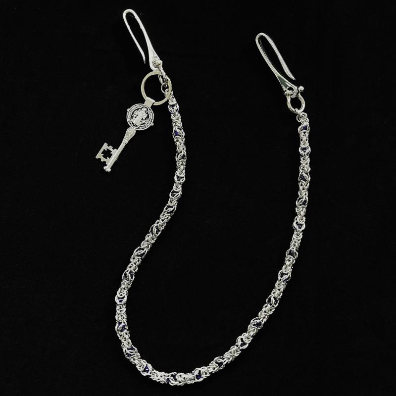 *こちらのアイテムは受注生産となります。 VFO-094 素材 ag925silver,brass ナスカン最大横幅:約19mm(紐通し部分外径)/26mm(把手部分込み) ナスカン最大縦幅54mm(回転パーツ込み) チェーン横幅:約18mm 全長約330mm(フック先端からフック先端) オリジナルで製作した有りそうで無かった大きいコマのキヘイチェーンのウォレットチェーンです。嫌味に見えないギリギリの大きさを狙ったチェーンのコマの規格感が、インパクトを与えながら、キヘイチ... 326,700円 税込 送料込 カードOK BLESS(ブレス) ![]() | ||