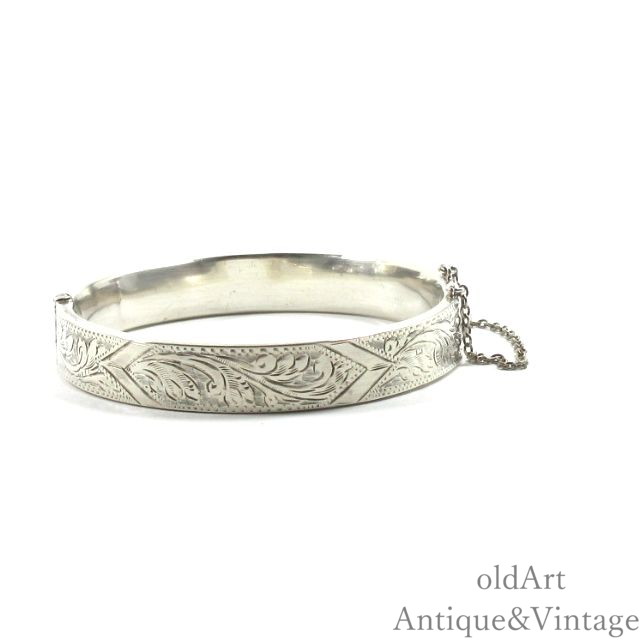 こちら英国イギリス1940年にバーミンガムで製造された、スターリングシルバー製のヴィンテージブレスレット/バングルになります。 唐草模様の繊細なエングレービング/手彫りが刻まれており、アンティーク感のあるとても素晴らしい逸品です。 ホールマーク/刻印:メーカーマーク・碇(バーミンガム)・ライオン横(スターリングシルバー)・Q(年号) 材質:スターリングシルバー 色:シルバー サイズ:幅10mm 厚さ3.4mm 開口部 約50mm 腕周り(内周):約17.5cm 【腕周り16.2cmのスタッフですとゆとりのある丁度良い着用感です】 【腕周り13cmのスタッフですとゆとりはありますが落下はしませんので問題なく着用出来ます】 重量:約12.9g 所々に凹みが御座います。 その他、年代物になりますので経年による擦れや小傷・シルバー特有の変色はありますが、全体的に良好な状態です。 年月を重ねてきたヴィンテージならではのオールド感もあり雰囲気が素晴らしい逸品です。 ※年代物の風合いを損なわないため、変色は少し残しておりますが、もしご希望が御座いましたら綺麗に磨いてからお送りさせて頂くことも可能です。(施工費は無料) 年代物の大変貴重なコレクションです。 一期一会の一点物になりますのでこの機会に是非ご検討くださいませ。 大切な方への贈り物にもお勧めです。 プレゼント用ラッピングも承っておりますのでお気軽にご利用くださいませ。 24,800円 税込 送料込 カードOK オールドアートアンティーク ![]() | ||