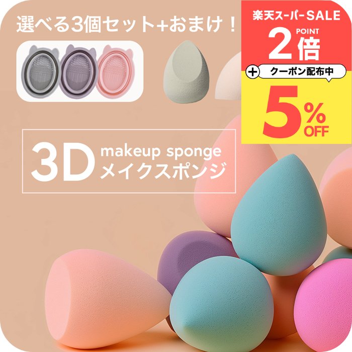 ケース入りが嬉しいメイク用スポンジ4個セット。 立体型で広い部分も細部も塗りやすいデザイン♪ ドライ・ウェットどちらでも使用可☆ 水を含ませると膨らみ、肌に接する面積が拡大します。 【カラーについて】 生産ロットにより柄の出方や色の濃淡が異なる場合がございます。 お使いのモニターや撮影時の光の加減などにより 画像と実際の商品のカラーが異なる場合もございます。 予告なしにカラーやデザインなどの変更がある場合もございます。 【素材について】 ポリウレタン 490円 税込 送料込 カードOK レビュー2件 Plus Nao ![]() | ||