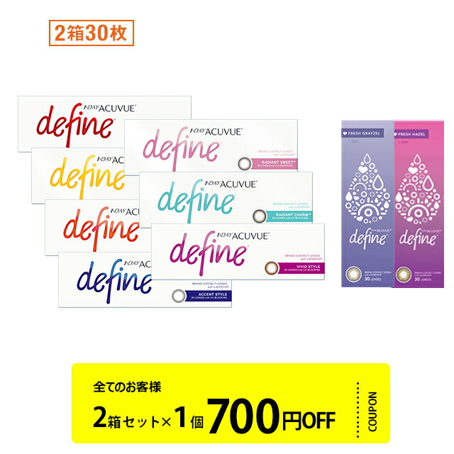 ※眼科医院などで検査を受けてからお求めください。 1DAY ACUVUE DEFINE MOIST ワンデー アキュビュー ディファイン モイスト (1箱30枚入り / 1day / 度なし / 度あり) 健康的な瞳とつけ心地、そして至近距離でも自然な美しさ♪ ディファイン独自の高解像度*ぼかしフチカラコン新登場! シアー ドリーム、シアー アリュール☆ *高解像度の極小ドットデザイン ■ 枚数 1箱30枚入り ■ 使用期間 1日使い捨て ■ 度数 +0.50、+1.00 ±0.00(度なし) -0.50〜-6.00 (0.25ステップ) -6.50〜-9.00 (0.50ステップ) ※シアードリーム、シアーアリュールは+0.50D、+1.00Dの製作はありません。 ■ カラー アクセントスタイル ナチュラルシャイン ヴィヴィッドスタイル ラディアントブライト ラディアントチャーム ラディアントスウィート ラディアントシック シアードリーム シアーアリュール ■ DIA 14.2mm ■ 着色直径 アクセントスタイル:12.5mm ナチュラルシャイン:12.7mm ヴィヴィッドスタイル:12.8mm ラディアントブライト:12.7mm ラディアントチャーム:12.7mm ラディアントスウィート:12.7mm ラディアントシック:12.7mm シアードリーム:12.8mm シアーアリュール:12.8mm ■ BC 8.5mm ■ 含水率 58% ■ 高度医療機器承認番号 22300BZX00126000 ■ 製造国 アメリカ、他 ■ 販売元 ジョンソン&ジョンソン株式会社 ■ 製造販売元 ジョンソン&ジョンソン株式会社 ■ 広告文責 株式会社カズマ リリーアイズ TEL:0800-777-7777 日本国内正規流通品 ■ 区分 高度管理医療機器 許可番号:札保医許可(機器)第10232号 「高度管理医療機器等販売許可証」取得 【安全にご使用頂くためのお約束】 ・眼科医の指示を受け、それをお守りください。 ・製品に添付されている使用者向け添付文書を読み熟知ください。 ・装用時間、装用サイクルをお守りください。 ・取扱方法を守り正しくご使用ください。 ・定期検査を必ずお受けください。 ・少しでも異常を感じたら直ちに眼科医の検査をお受けください。CAMPAIGN キャンペーン 当ページ商品は《ポイント7倍》対象商品!! ▼ 要エントリー!エントリーはこちら ▼ ※エントリー前のお買い物はポイント付与の対象外となります※ ITEM 商品説明 まとめ買いはこちら 2箱セット 6箱セット 欠品情報 以下のカラー・度数(PWR)でメーカーによる欠品が発生しております。 カラー度数(PWR) CAMPAIGN キャンペーン 6,180円 税込 送料込 カードOK レビュー2268件 リリーアイズ ![]() | ||
