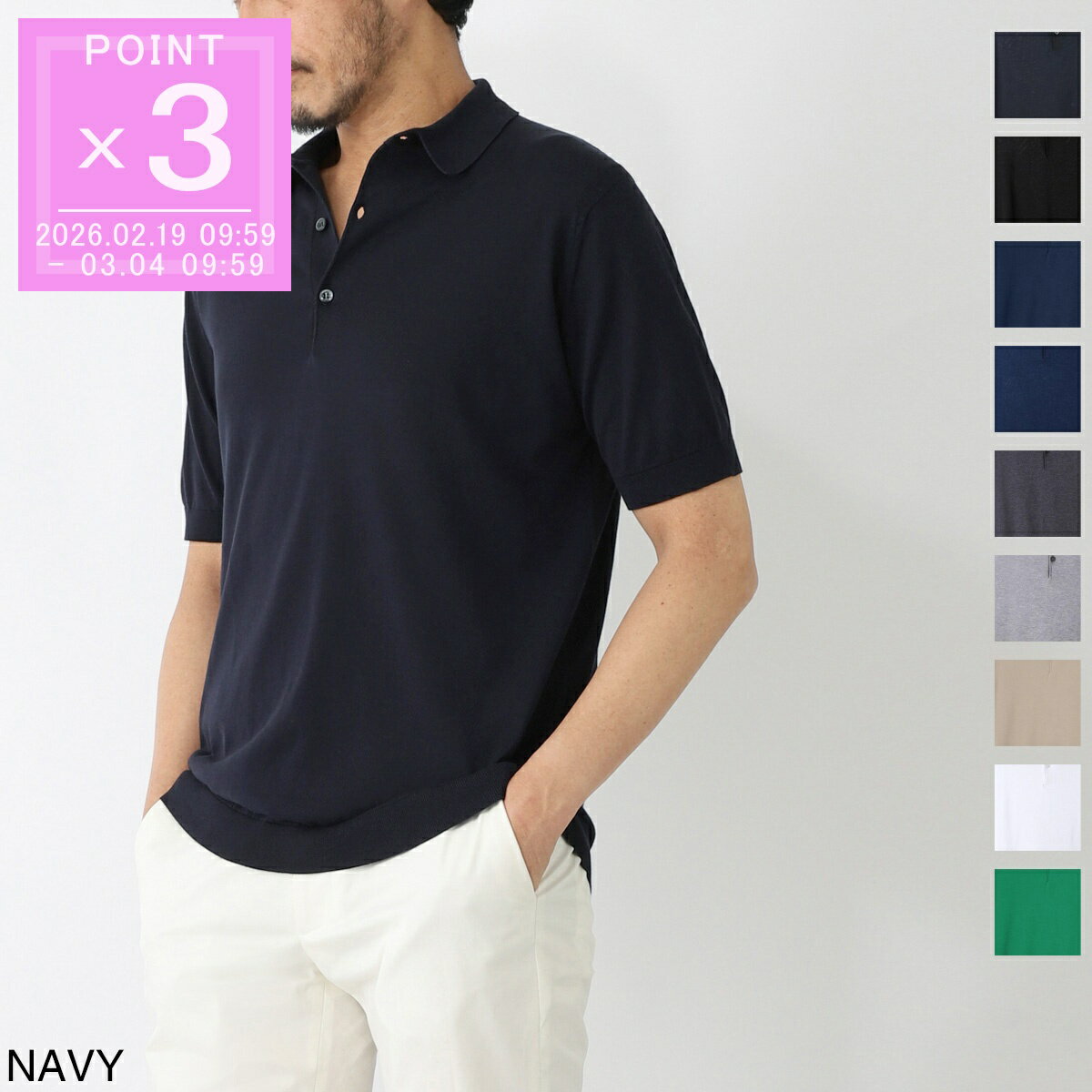 BRANDジョンスメドレー/JOHN SMEDLEYITEMニットポロシャツ/ADRIAN シーアイランドコットン 30ゲージ STANDARD FITItem No.adrian-charcoal, adrian-greenflare, adrian-indigo, adrian-navy, adrian-almond, adrian-frenchnavy, adrian-black, adrian-silver, adrian-white管理: CCGRY CCGRN CCBLU CCBEG CCBLK CCWHT TTMNジョンスメドレー/JOHN SMEDLEY ニットポロシャツ "ADRIAN シーアイランドコットン 30ゲージ STANDARD FIT"コンパクトな襟とスタンダードフィットを採用し、美しいシルエットが特徴的なニットポロシャツ「ADRIAN(エイドリアン)」。最高品質のシーアイランドコットンを採用しています。飽きの来ないミニマルなデザインに加え、袖口と裾のマイクロリブがアクセントに。さらにクラシックなスタイルを彷彿とさせるほど良いアームの長さも魅力的です。30ゲージの細やかなニットは柔らかく軽やかで、ほんのり艶めく発色がラグジュアリーな佇まいへと誘うエレガントな名品です。【素材・風合い】シルクのように艶やかで、カシミヤのようになめらかな、最高品質の「シーアイランドコットン(海島綿)」を採用しています。カリブ海西インド諸島の限られた地域でのみ生育し、肌触りの心地良さと美しさから「世界で最も優秀な綿」とも謳われる稀少素材です。そして、その魅力を最大限に引き出しているのが、ジョンスメドレーによる厳格な品質管理。18世紀から続くファクトリーがある英国マトロック地方のリーミルズ村、ダービーシャー国立公園の豊かな湧水で丁寧に洗浄。化学物質の影響や洗濯、発汗、摩耗など細かく設定された厳正な検査を経ることで、発色は常に美しく、また強靭で高い吸水性を誇る極上のニットウエアが生み出されています。極細の長繊維のため素肌に合わせてもチクチクとしたかゆみを感じず、極上の着心地を堪能できる名品です。※替えボタンが付属していない場合がございます。※注文されたサイズと商品の表記タグのサイズが異なる場合がございます。サイズ感としては、弊社の採寸基準で取り決めた実寸値のサイズになりますので、あらかじめご了承ください。また、同じ表記サイズの中でも実寸値に若干の個体差が見受けられます。詳しいサイズ・寸法に関しては、お気軽にお問合せくださいませ。フィット感が気になる方は、2サイズの試着をおすすめしておりますので、こちらもぜひご利用下さい。SILVERINDIGOFRENCHNAVYNAVYWHITEBLACKGREENFLARECHARCOALALMOND表地:100%シーアイランドコットン有料ラッピング(200円税込)希望の方はこちら胸囲肩巾袖丈着丈Sサイズ94382267Mサイズ1014123.568Lサイズ108442569XLサイズ1154726.570XXLサイズ122502771 23,500円 税込 送料込 カードOK レビュー84件 モダンブルー楽天市場店 ![]() | ||