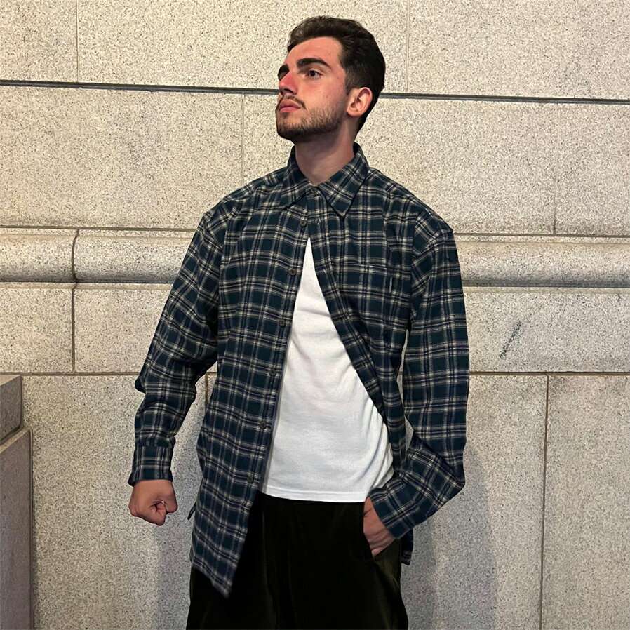 90年代 ストリート ファットファッションの決定版 ミドルスクール 黄金期 の象徴 オーバーサイズ シルエット ネルシャツ オールフォーワンからシンプルなチェック柄で人気を集める 厚手の「ネルシャツ ジャケット」 再入荷しました。 袖ボタンはエコなウッドボタン(木材)使用。 左胸ポケットで タバコ、携帯等小物収納可能。 動きやすさを考慮し、脇スソの左右に「スリット」装着。 保温性を高める厚手の起毛ネル素材はジャケットとしても使えるインナーアウターの両刀 ストリート派に最適です。 【素材】アクリル 100% 【サイズ】着丈/身幅/袖丈(cm) XL:83/66/65 XXL:88/69/67 MODEL : H 183cm(Male) GREEN XL 着用 MODEL :FAY 197cm(Male) GRAY XL 着用 MODEL :ISABELA 158cm(Female) GRAY XL 着用サイズ 着丈 身幅 袖丈 XL 83cm 66cm 65cm XXL 88cm 69cm 67cm 6,400円 税込 送料込 カードOK レビュー11件 ALL SCHOOL ![]() | ||