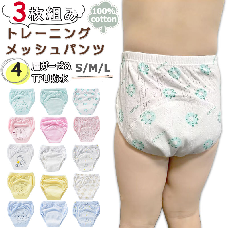 【送料無料】 トレーニングパンツ 女の子 男の子 3層 トレパン メッシュ生地 トイレトレーニング 綿100% シンプル 無地 子供 夏 涼しい 下着 パンツ キッズ おねしょ 肌着 ユニセックス かわいい おしゃれ 90 100 110 ベビー 赤ちゃん 子供用 通気性 吸水性 おねしょ対策 こども 子供用おむつ ふんわり柔らかで心地よい肌触り。お肌に触れる部分はコットン100%素材。お肌の弱いお子様にもおすすめ◎生地は通気性の良いメッシュ仕様。夏場でも蒸れにくく、おむつより着心地抜群!汗っかきのお子様... 550円 税込 送料込 カードOK 総合ストア インプレス ![]() | ||