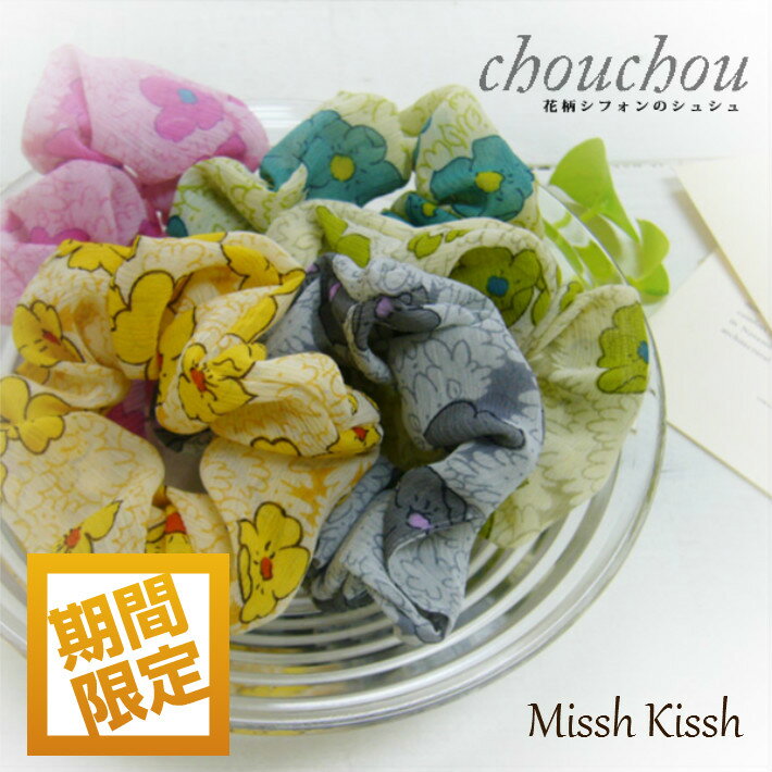 レトロな花柄シュシュ。和テイストなスタイルにも◎ 2巻きで結んでも、なんとなく花柄だというのがわかる、程よい大きさの柄がかわいい。 その上スタンダードなシフォン素材で、流行に流されず長くお使い頂けそうです。 カラーバリエは、グリーン、グレー、イエロー、ブルー、ピンクの全5色。 ゴムサイズは手首に巻いてちょうど良い長さです。ほどよいボリューム感でロングヘアの方はもちろん短めのヘアスタイルの方にもおすすめ。 花柄シフォンのシュシュ ブランド ミッシュキッシュオ... 550円 税込 送料別 カードOK レビュー1件 ミッシュ キッシュ ![]() | ||