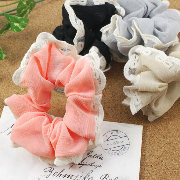 大人かわいいシュシュ。やや透け感のある生地で軽やか。 シンプルだけどリボン模様のレースの縁取りがおしゃれ。 ガーリーテイストでやさしいイメージです。 しっかりしたゴムなので、きちんと髪を結わえられます。大きすぎず小さすぎず、ちょうどいい感じ! 【色】ブラック、ベージュ、ホワイト、サーモンピンク * 縁どりレースはすべてアイボリー色 【サイズ】直径約 11 cm ※ メール便可○... 330円 税込 送料別 カードOK レビュー1件 美美波”viviva-beauty&accessory ![]() | ||