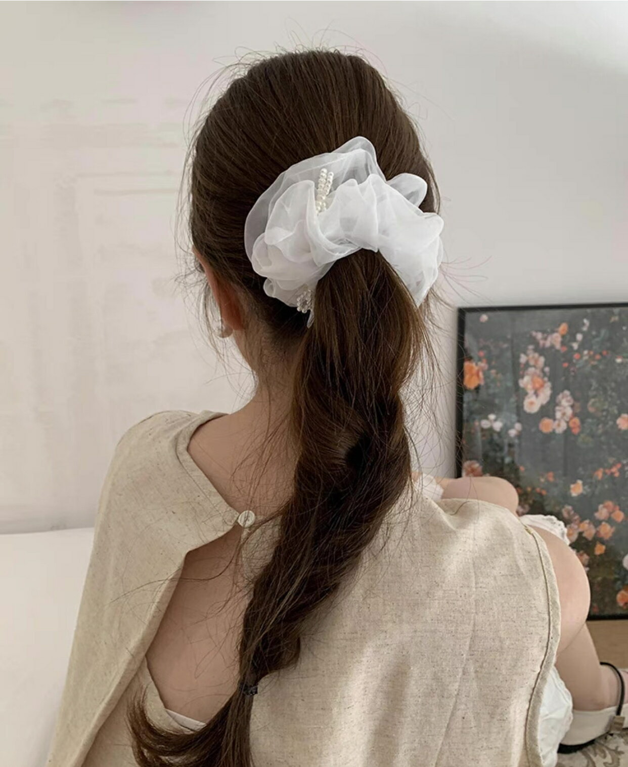 リボンモチーフシュシュ オーガンジーシュシュ ビッグシュシュ パール ヘアゴム 春夏 おしゃれ 大人可愛い シンプル レディースヘアアクセサリー 華やかでフェミニンな雰囲気になります。ヘアアクセサリーだけでなく手首につけても映えます。 5 980円 税込 送料別 カードOK DEAR CORAL 楽天市場店 ![]() | ||