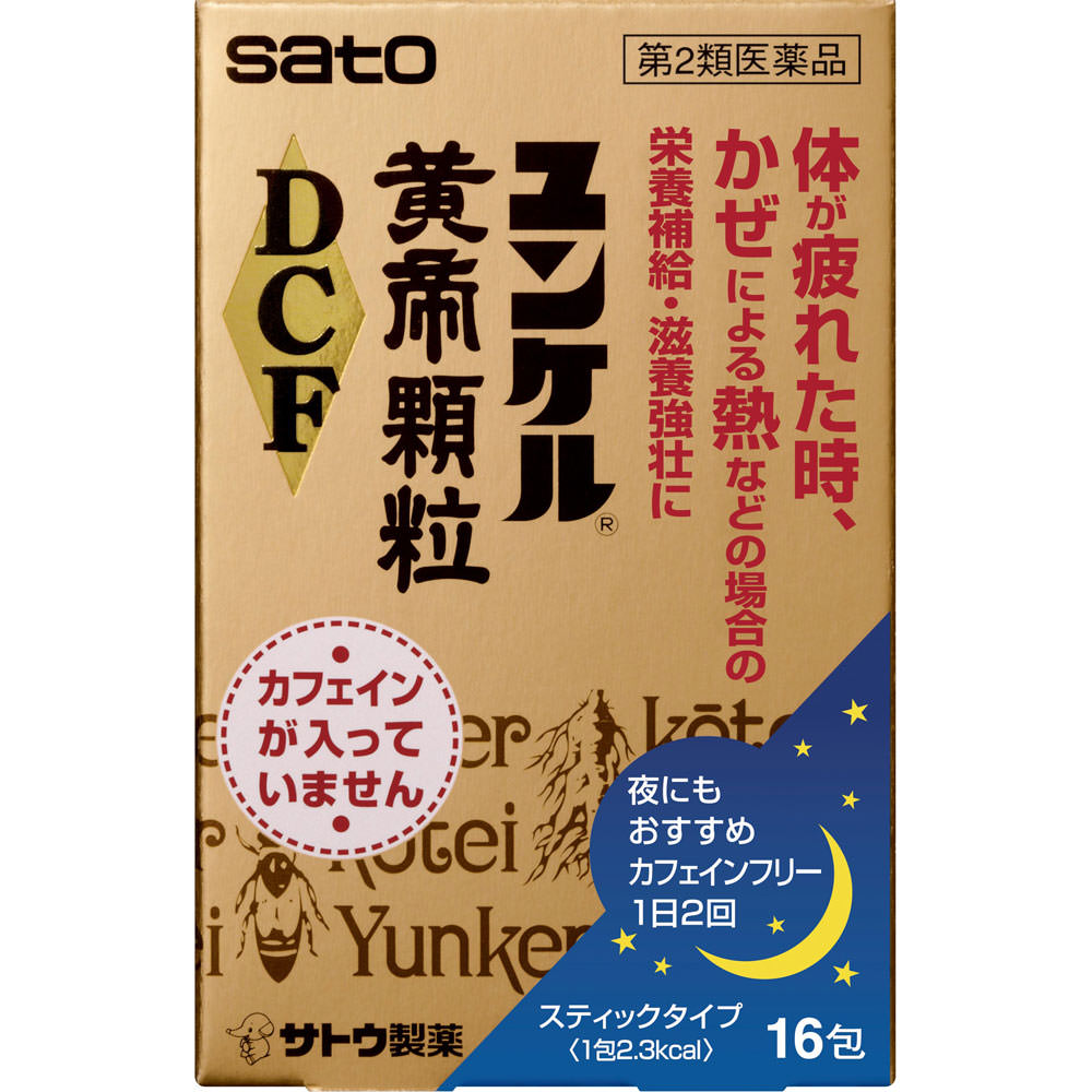![]() | 添付文書の内容商品説明文 特徴 ユンケル黄帝顆粒DCFは・・・ ゴオウ、ローヤルゼリーなどの動物性生薬とニンジン、セイヨウサンザシ、ジオウなどの植物性生薬に各種ビタミンを配合した顆粒で、滋養強壮、肉体疲労時やかぜなどの発熱性消耗性疾患時の栄養補給に効果をあらわします。 カフェインを含まないので、おやすみ前にも服用しやすい顆粒です。 使用上の注意 ■相談すること 1.服用後,次の症状が現れた場合は,副作用の可能性がありますので,直ちに服用を中止し,この文書を持って医師,薬剤師又は登録販売者にご相談ください [関係部位:症状] 皮膚:発疹・発赤,かゆみ 2.しばらく服用しても症状がよくならない場合は服用を中止し,この文書を持って医師,薬剤師又は登録販売者にご相談ください 有効成分・分量 2包中(1包2g) 成分・・・分量・・・作用 ゴオウ末・・・2.25mg・・・牛の胆のう中に生じた結石:結石を粉末にしたもので、滋養強壮、肉体疲労・発熱性消耗性疾患時の栄養補給に効果をあらわします。 カシュウエキス・・・40mg・・・ツルドクダミの塊根:それぞれの生薬から抽出されたもので、滋養強壮、肉体疲労・発熱性消耗性疾患時の栄養補給に効果をあらわします。 セイヨウサンザシエキス・・・30mg・・・西洋サンザシの花:それぞれの生薬から抽出されたもので、滋養強壮、肉体疲労・発熱性消耗性疾患時の栄養補給に効果をあらわします。 ジオウエキス・・・120mg・・・アカヤジオウの根:それぞれの生薬から抽出されたもので、滋養強壮、肉体疲労・発熱性消耗性疾患時の栄養補給に効果をあらわします。 ニンジンエキス・・・41.38mg・・・オタネニンジンの根:それぞれの生薬から抽出されたもので、滋養強壮、肉体疲労・発熱性消耗性疾患時の栄養補給に効果をあらわします。 ローヤルゼリー・・・54mg・・・ミツバチの咽頭腺から分泌された乳状物を凍結乾燥して粉砕したもので、滋養強壮に効果をあらわします。 コンドロイチン硫酸エステルナトリウム・・・120mg・・・滋養強壮に効果をあらわします。 酢酸d-α-トコフェロール(天然型ビタミンE)・・・10mg・・・身体の働きに欠かせないビタミン類で、滋養強壮、肉体疲労・発熱性消耗性疾患時の栄養補給に効果をあらわします。 ビタミンB1硝酸塩・・・10mg・・・身体の働きに欠かせないビタミン類で、滋養強壮、肉体疲労・発熱性消耗性疾患時の栄養補給に効果をあらわします。 ビタミンB6・・・10mg・・・身体の働きに欠かせないビタミン類で、滋養強壮、肉体疲労・発熱性消耗性疾患時の栄養補給に効果をあらわします。 ビタミンB2・・・5mg・・・身体の働きに欠かせないビタミン類で、滋養強壮、肉体疲労・発熱性消耗性疾患時の栄養補給に効果をあらわします。 ニコチン酸アミド・・・25mg・・・身体の働きに欠かせないビタミン類で、滋養強壮、肉体疲労・発熱性消耗性疾患時の栄養補給に効果をあらわします。 添加物として、二酸化ケイ素、エリスリトール、マクロゴール、還元麦芽糖水アメ、D-マンニトール、ヒドロキシプロピルセルロース、DL-リンゴ酸、無水ケイ酸、アスパルテーム(L-フェニルアラニン化合物)、香料(アルコールを含む)を含有します。 効能・効果 ●滋養強壮 ●虚弱体質 ●肉体疲労・病中病後・食欲不振・栄養障害・発熱性消耗性疾患・妊娠授乳期などの場合の栄養補給 用法・用量 年齢・・・1回量・・・1日服用回数 成人(15才以上)・・・1包・・・2回 15才未満・・・服用しない 用法関連注意 定められた用法・用量を厳守してください。 成分に関連する注意 保管及び取り扱い上の注意 (1)直射日光の当たらない湿気の少ない涼しい所に保管してください。 (2)小児の手の届かない所に保管してください。 (3)他の容器に入れ替えないでください。(誤用の原因になったり品質が変わるおそれがあります。) (4)使用期限をすぎた製品は,服用しないでください。 製造販売元 本剤についてのお問い合わせは、お買い求めのお店あるいは下記にお願いいたします。 会社名:佐藤製薬株式会社 問い合わせ先:お客様相談窓口 電話:03(5412)7393 受付時間:9:00〜17:00(土,日,祝日を除く) 佐藤製薬株式会社 東京都港区元赤坂1丁目5番27号 広告文責会社名:株式会社ウィーズ TEL:048-501-7440 区分:第二類医薬品 メーカー:佐藤製薬株式会社 13,200円 税込 送料別 カードOK 花x花ドラッグ楽天市場店 ![]() | |