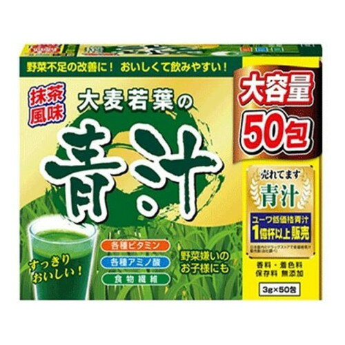 商品説明ユーワ 大麦若葉の青汁 50包■原材料原材料 大麦若葉末、デキストリン栄養成分1包(3g)当たり熱量…6.41kcal、タンパク質…0.48g、脂質…0.06g、炭水化物…1.59g、糖質…0.37g、食物繊維…1.22g、食塩相当量…0.024g、カルシウム…8.64mg、鉄…1.13mg、亜鉛…0.07mg、カリウム…38.4mg、マグネシウム…3.6mg、ビタミン B1…0.01mg、ビタミンB2…0.02g、ビタミンB6…0.01mg、ビオチン…0.5?g、葉酸…3.6?g、ビタミンC…0.07mg... 4,698円 税込 送料別 カードOK 創快健美 ![]() | ||