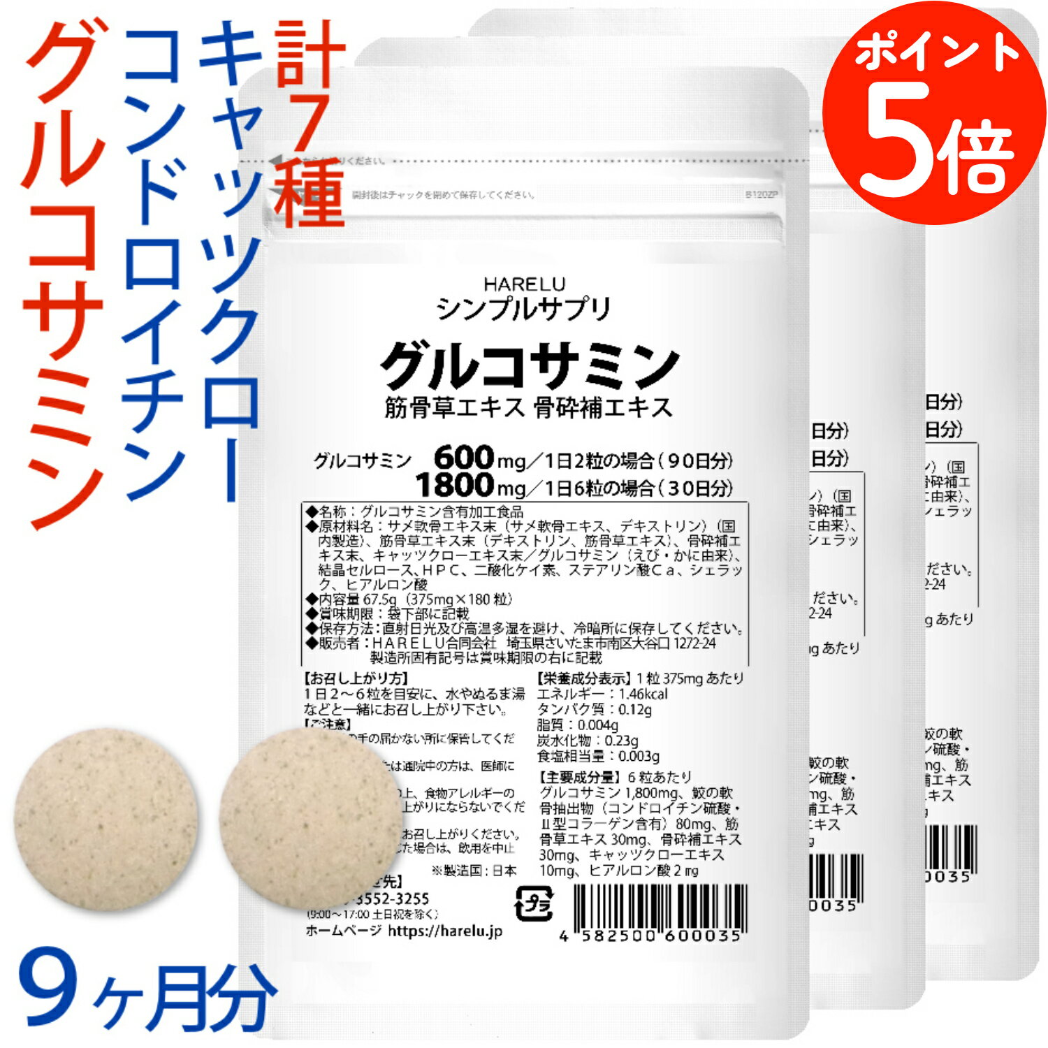 メーカー希望小売価格はメーカーサイトに基づいて掲載しています●商品特徴 ◇純度98%以上のグルコサミン含む7種類のスムーズ成分を配合。 ◇筋骨草エキス(筋骨をサポート)や骨砕補エキス(骨砕を補う)も加えています。 ◇軟骨の構成成分である2型コラーゲン、ヒアルロン酸も配合。 ◇穏やかサポート成分のキャッツクローエキス(4〜5倍濃縮)も配合。 ◇グルコサミンやコンドロイチンは、加齢とともに減少。継続的に摂取するのがおすすめ。 ◇2粒でも600mgのグルコサミンが摂れます。筋骨グルコサミン。 ◇歩行や階段の上り下りなど、運動時の違和感が気になる方へ。 ◇いつまでも気兼ねなく外出されたい方、元気に過ごしたい方へ。 ◇GMPの認証を受けた日本国内の工場で製造しています。 商品名:HARELU シンプルサプリ グルコサミン 筋骨草エキス 骨砕補エキス 内容量:67.5g(375mg×180粒)/1袋当り お召し上がり方:1日2〜6粒を目安に、水やぬるま湯などと一緒にお召し上がり下さい。 製造国:日本 主要成分量:6粒あたり グルコサミン1,800mg、鮫の軟骨抽出物(コンドロイチン硫酸・2型コラーゲン含有)80mg、筋骨草エキス30mg、骨砕補エキス30mg、キャッツクローエキス10mg、ヒアルロン酸2mg ※2粒摂取の場合は、3分の1の量になります。 原材料名:サメ軟骨エキス末(サメ軟骨エキス、デキストリン)(国内製造)、筋骨草エキス末(デキストリン、筋骨草エキス)、骨砕補エキス末、キャッツクローエキス末/グルコサミン(えび・かに由来)、結晶セルロース、HPC、二酸化ケイ素、ステアリン酸Ca、シェラック、ヒアルロン酸 栄養成分表示: 1粒375mgあたり エネルギー:1.46kcal タンパク質:0.12g 脂質:0.004g 炭水化物:0.23g 食塩相当量:0.003g 保存方法:直射日光及び高温多湿を避け、冷暗所に保存してください。 ご注意: ・乳幼児の手の届かない所に保管してください。 ・薬を服用中または通院中の方は、医師にご相談ください。 ・原材料をご確認の上、食物アレルギーのある方は、お召し上がりにならないでください。 ・開封後はお早めにお召し上がりください。 ・お体に異常を感じた場合は、飲用を中止してください。 グルコサミン グルコサミン2袋 グルコサミン3袋 4,800円 税込 送料込 カードOK レビュー29件 サプリ HARELU ![]() | ||