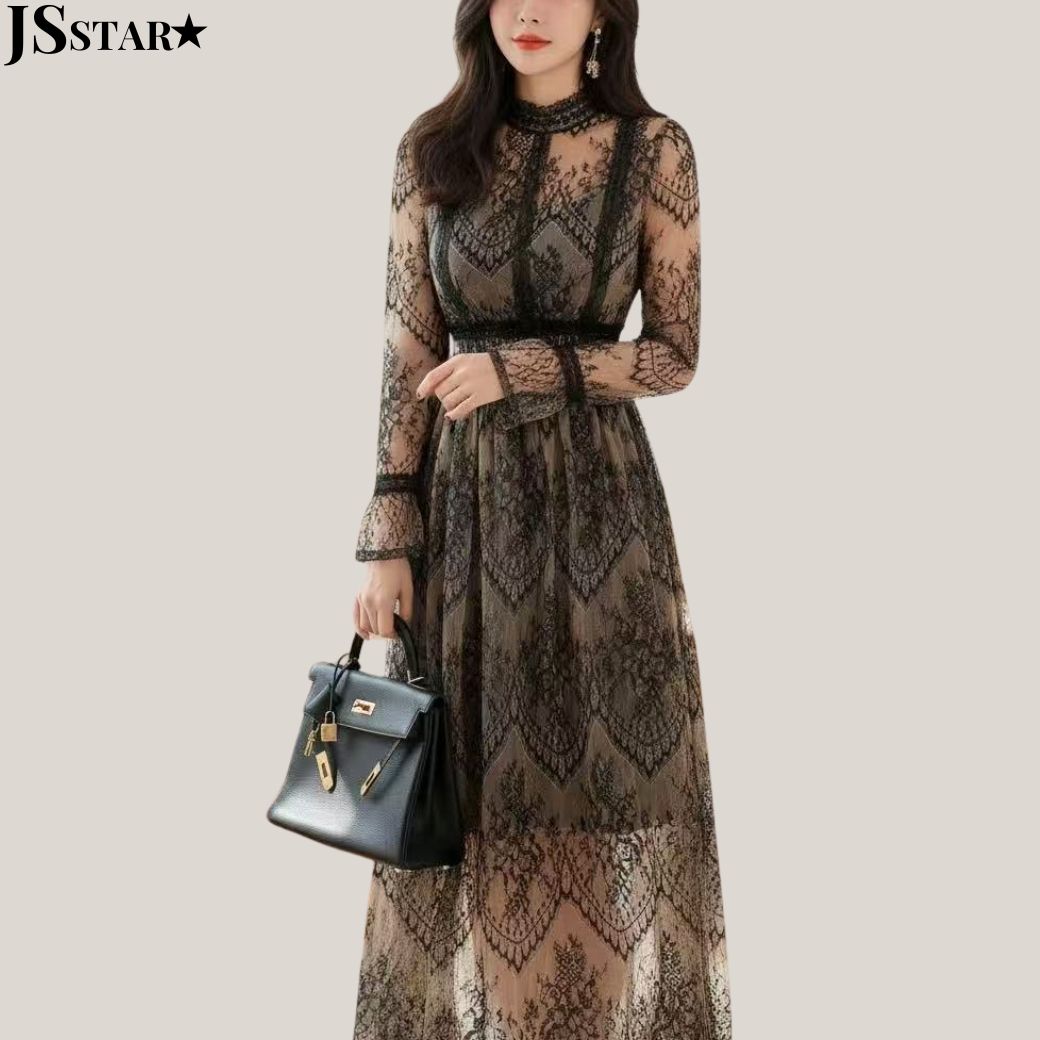 全2色・ 商品コメント ◆シースルー・総レースワンピースです。 ◆ウエストマークはゴム仕様で動きが楽々、ハイウエストで脚長効果も期待できます◎ ◆シースルー総レースで華やかに仕上がるドレスワンピ。キャミワンピ風裏地付きです。 ◆カジュアルなシーンにも、パーティーや結婚式などにもおすすめな一枚です。 サイズ ◆S/M/L/XL サイズ ◆モデルサイズ: 168cm/45kg (Sサイズ着用) 実寸 S: 着丈121 バスト80-84 ... 8,560円 税込 送料込 カードOK レビュー2件 JSstar ![]() | ||
