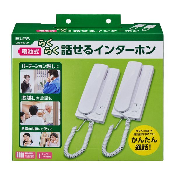 1412. 朝日電器 ELPA CDS-600-2P らくらく話せるインターホン CDS6002P (LINEクーポン有)朝日電器 ELPA CDS-600-2P らくらく話せるインターホン CDS6002P 【商品説明】●パーテーション越しや窓越しの会話、ご家庭の内線でご使用できます。 ●ボタンを押して受話器を取るだけで簡単に通話ができます。... 3,322円 税込 送料別 カードOK iDECA 楽天市場店 ![]() | ||
