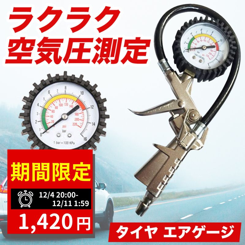 ■商品仕様 ・アナログ式 ・クリップオンタイプ ■商品説明 ・エアーコンプレッサーと接続して空気の充填ができます。 ・車の点検・整備・修理に使えるエアゲージです。 ・表示が見やすいアナログ式です。 ・日本国内で一般的に使用されているワンタッチカプラーに接続できます! ・減圧バルブスイッチで多めに入れた空気を少しずつ減圧。細かく空気圧を調節することが可能です! ・複数のタイヤに同じ量の空気を入れるときに重宝します! ・参考キーワード 自動車 二輪 エアチェックガン エアー 空気圧チェック 見やすい メンテナンス ■注意事項 ※入荷時期により予告なく商品仕様やパッケージのデザインが変更する場合があります。 ※ディスプレイ画面等の環境上、写真と実際の商品の色とは多少違う場合がございます。\お気に入り登録でお得な情報をGET/ 1,420円 税込 送料込 カードOK レビュー5件 Alaka ![]() |