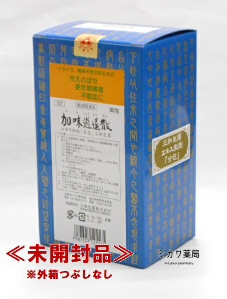 753. サンワ加味逍遙散エキス細粒「分包」 【第2類医薬品】【代引・後払い不可】ゆうメール配送の為、外箱開封状態で配送サンワ加味逍遙散エキス細粒「分包」三和生薬90包送料無料【smtb-k】【w1】 お買い上げいただける個数は5個までです第2類医薬品 エキス細粒「分包」三和生薬 加味逍遙散エキス細粒「分包」三和生薬は,漢方処方「加味逍遙散」の水製エキスを服用しやすい細粒の分包にしたものです。 使用上の注意 用法・用量 次の 1回量を 1日 3回食前又は食間に服用すること。 相談すること 1.次の人は服用前に医師又は薬剤師に相談すること (1) 医師の治療を受けている人。 (2) 妊婦又は妊娠していると思われる人。 (3) 胃腸の弱い人。 (4) 高齢者。 (5) 今までに薬により... 5,326円 税込 送料込 カードOK 漢方薬局 ミカワ薬局 ![]() | ||