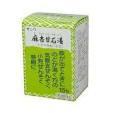 商品名 サンワ 麻杏甘石湯 15包 内容量 15包 成分 本品1日量 3包(1包 2g)中 麻杏甘石湯水製エキス 1.8g、マオウ 3.2g、キョウニン 3.2g、カンゾウ 1.6g、セッコウ 8.0g ※添加物として乳糖、トウモロコシデンプンを含有する。 適応症 体力中等度以上、せきが出て、ときにのどが渇くものの次の諸症:せき、小児ぜんそく、気管支ぜんそく、気管支炎、感冒、痔の痛み 用法・用量 次の1回量を1日3回食前又は食間に服用すること。 年 令 1 回 量 大人(15才以上) ... 6,238円 税込 送料込 カードOK メガヘルスマート ![]() | ||