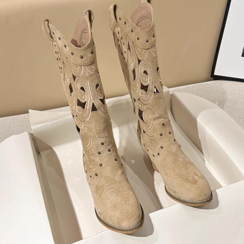 1068. 【予約販売5~12営業日での発送】 ブーツ レディース レトロ ポインテッドトゥ チャンキーヒール ロング丈 ウエスタンスタイル 騎士風 スエード調 刺繍 カットアウト 通気性 春夏 カーキ キャメル ・カテゴリ: サンダルブーツ・対象年齢: 成人・アッパー素材: スエード・ソール素材: ゴム・性別: レディース・スタイル: レトロ・つま先形状: ポインテッドトゥ・ヒール形状: チャンキーヒール・ヒール高: 3〜5cm・流行ブーツ: ライダーブーツ・機能: 通気性・筒丈: ハイカット・柄: 無地・対象シーズン: 春、夏、秋・インソール素材: PU・裏地素材: レザー・ブーツ筒裏地素材: マイクロファイバー・ブーツ筒素材: スエード・総重量: 約1000g・ソー... 6,253円 税込 送料込 カードOK 花りぼん ![]() | ||