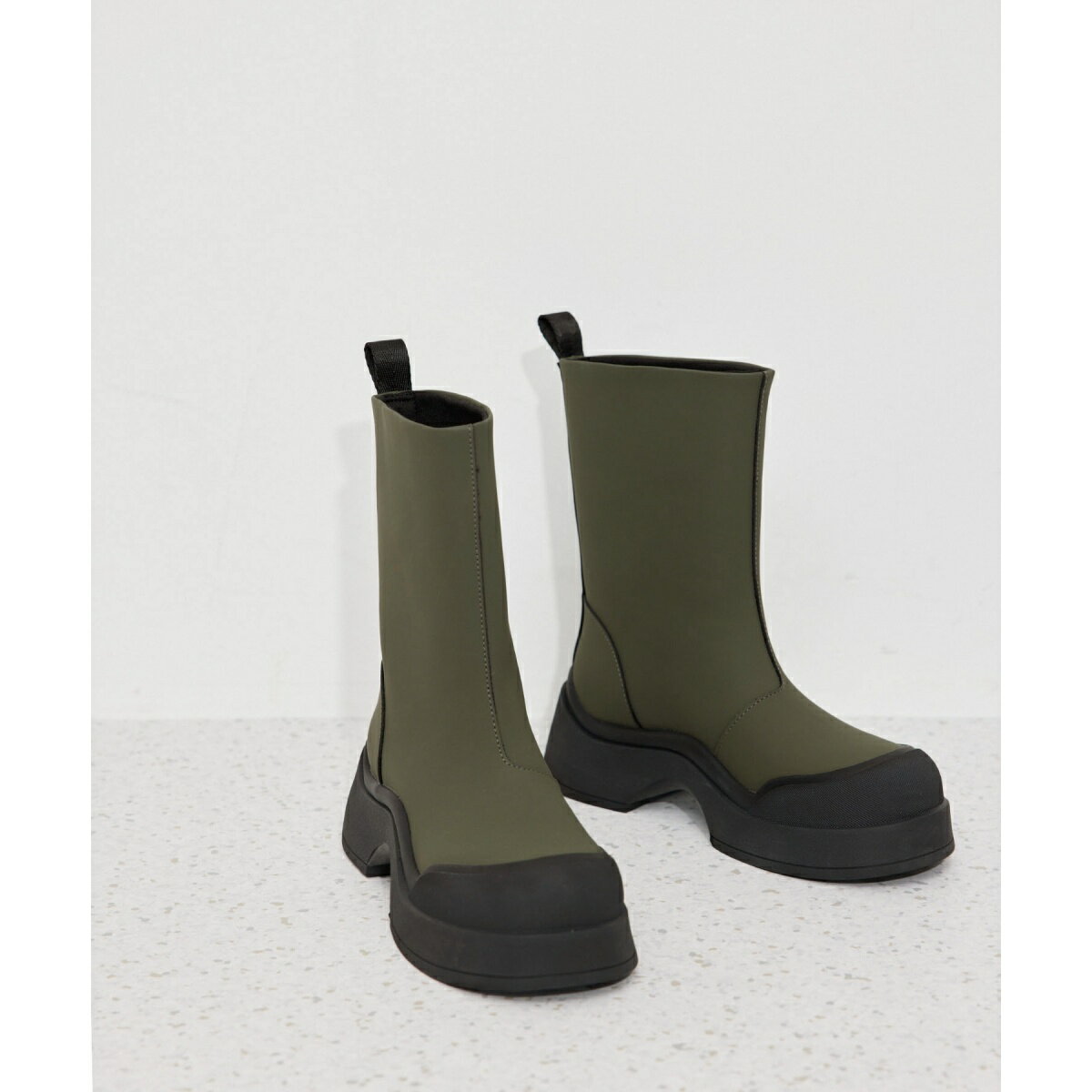 [型番:GAA04240]【雨の日はもちろん、シーンを問わずスタイルアップが叶う。マットな質感とボリューム感がポイントのミドル丈ブーツ】◇2024春夏◇ADAM ET ROPE' FEMME【Material】雨に濡れてもお手入れのしやすい、ラバー調でマットな質感のフェイクレザーを使用。【Design】雨の日の足元に迷わない晴雨兼用仕様の厚底ブーツ。つま先まで覆われたしっかりと高さのあるボリュームソールは、水や泥の汚れが気になりにくく、雨の日でもスタイルアップの叶うアイテム。マットなラバー調の質感がモードで、雨の日はもちろんシーズンやシーンを問わず着用可能。厚底ソールと、アッパーのハギ目には止水テープを内蔵し浸水しにくい仕様。※完全防水ではございません。濡れたままの放置は劣化を早める恐れがございます。使用後は布でやさしく拭きとり乾燥させて保管をお願いいたします。【Color】ブラック、カーキの2色展開。【Styling Point】程よい筒の太さで、雨に濡れたくないパンツの裾をインすることも可能。トレンドのワイドなシルエットのデニムと合わせてボリュームのあるトレンド感のあるスタイリングもおすすめ。※一部の箱に配送の際についてしまったキズ・へこみなどがある場合がございますが、商品に問題はございません。■カラー:ブラック(01)、カーキ(36)23.0/高さ 筒丈24 | cm23 | ヒール4 | 筒周り30 | プラットフォーム2.8 | その他(両足重量)1050g(ワイズ)D(足囲)22.423.5/高さ 筒丈24 | cm23.5 | ヒール4 | 筒周り30 | プラットフォーム2.8 | その他(両足重量)1050g(ワイズ)D(足囲)22.724.0/高さ 筒丈25 | cm24 | ヒール4 | 筒周り30 | プラットフォーム2.8 | その他(両足重量)1050g(ワイズ)D(足囲)23.024.5/高さ 筒丈25 | cm24.5 | ヒール4 | 筒周り30 | プラットフォーム2.8 | その他(両※( )で表記されている数字はヌードサイズです。ヌードサイズとは衣服を身につけない身体のサイズです。お客様ご自身の身体サイズと比較してお選びください。 ■素材: (甲材) 合成皮革 (底材) 合成底 ■お手入: >>商品のお取り扱い方法 ■原産国: 中国製晴雨兼用ボリュームソールミドル丈ブーツ/アダムエロペ(ADAM ET ROPE')ブラック(01)カーキ(36)画面上と実物では、多少色具合が異なって見える場合がございます。 19,800円 税込 送料別 カードOK 丸井(マルイ)楽天市場店 ![]() | ||