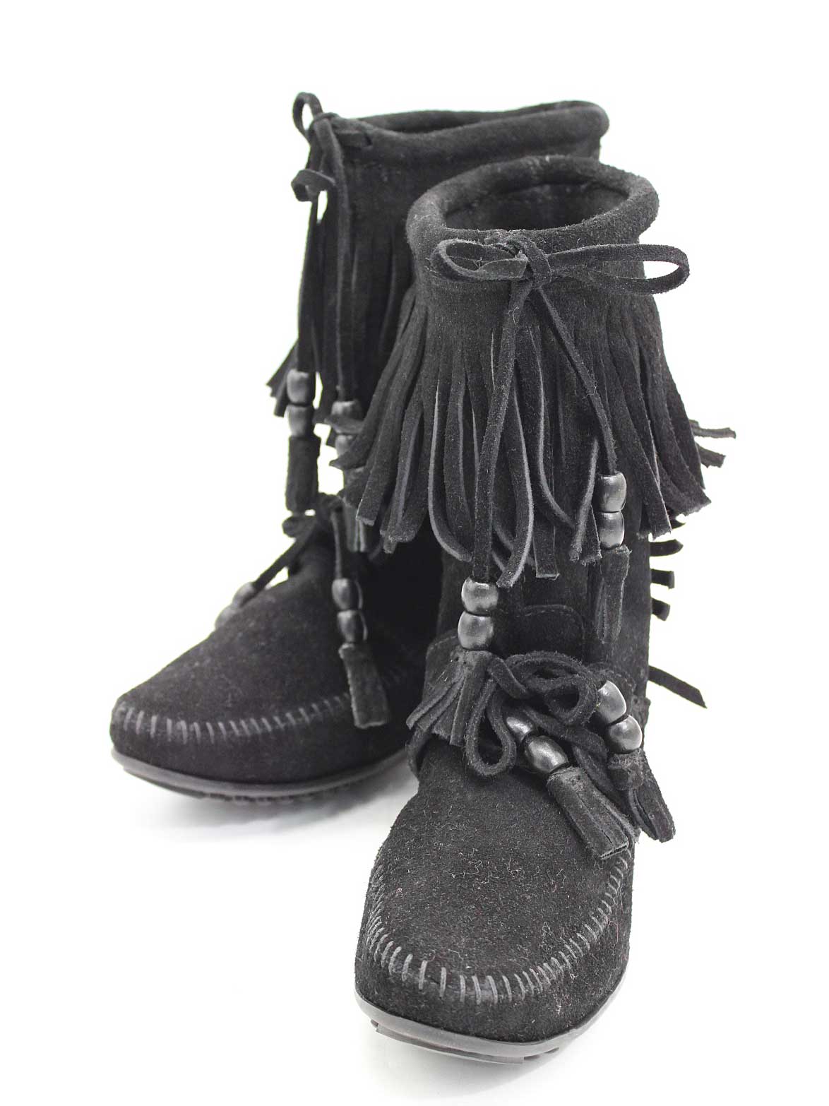 1799. 『Minnetonka/ミネトンカ』ウッドストックフリンジショートブーツ/カジュアル/シンプル/ショートブーツ/ブーツ/シューズ/靴 ブラック/黒 レディース 【中古】 秋冬 400142 サイズ サイズ表記 ブーツ丈約23cm ヒール約1.5cm 素材 表記なし スエード 色 ブラック/黒 汚れ、ダメージ等 写真のような擦れがある程度で、使用感なく綺麗な状態です 使用感ランク 【A】 その他 *使用感ランクは、Cを除き、あくまでも使用感のみ表すランクで、汚れ等は別欄で記載しております。 例)使用感【特A】で【汚れあり】は存在致します。 2,390円 税込 送料別 カードOK セカンズ&キッズセカンズ ![]() | ||