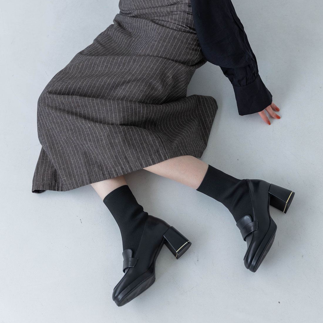【EVOL 2025AW collection】取り入れるだけで今っぽい旬のコーディネートが完成するショートブーツ。ローファーにニット素材をドッキングし、ソックス合わせをしたようなデザインが特徴的。ニット特有の脚のラインにぴたっとフィットするルックスが美脚見え!約7cmの高ヒールでもクッション入りで疲れにくく、滑りにくいソールを使用することで歩行時の安心感も◎ヒールの華奢なゴールドラインがさりげないアクセントに。【商品詳細(Mサイズ/23.5cm)】原産国:中国素材:合成皮革, 合成繊維ヒール高さ:7.0cm片足重量:382gアウトソール幅:8.5cm筒丈:18cm筒周り:20cm-----STAFF COMMENT-----【スタッフS】足長:右23.8cm・左23.8cm幅/ワイズ:標準・E甲:標準 着用サイズ:Mコメント:靴下着用でMサイズがぴったりです。足長23.8cmの私でつま先はしっかりめに入りますが指詰まりなく履けます。足幅が広く甲も高い方なので、若干ぴったりかな?と思いますがニット素材なので履き馴染みが出てくれば気にならないと思います。Lサイズは全体的に大きく、前滑りしてしまうので普段からぴったりした着用感が好きな私はMサイズで問題ないです。【スタッフT】足長:右23.2cm・左23.4cm幅/ワイズ:やや細め・C甲:標準着用サイズ:Mコメント:私は足長が23.4cmですが、ゆったりした履き心地が好きなので24.0cmもしくはLサイズを選ぶ場合もありますがMサイズでちょうどいい履き心地でした。足首部分はリブになっているので浮腫みやすい体質ですが、ストレスフリーで着用できそうです。だんだん足に馴染むと思うので、普段通りのサイズで問題ないと思います。================================================【チャットで気軽に相談】気になる着用感や入荷予定など、お気軽にご相談ください。※履き心地には個人差がございますので、あくまでも目安としてご覧ください。※商品画像はサンプルを使用しているため、色味やサイズ等の仕様に変更がある場合がございますので、予めご了承ください。【EVOL】レディースシューズブランド EVOL(イーボル)instagram(evol_official0)================================================交換・返品・キャンセル特約につきましてはこちらをご確認ください。メーカー希望小売価格はメーカー商品タグに基づいて掲載しています。 11,990円 税込 送料別 カードOK EVOL 楽天市場店 ![]() | ||