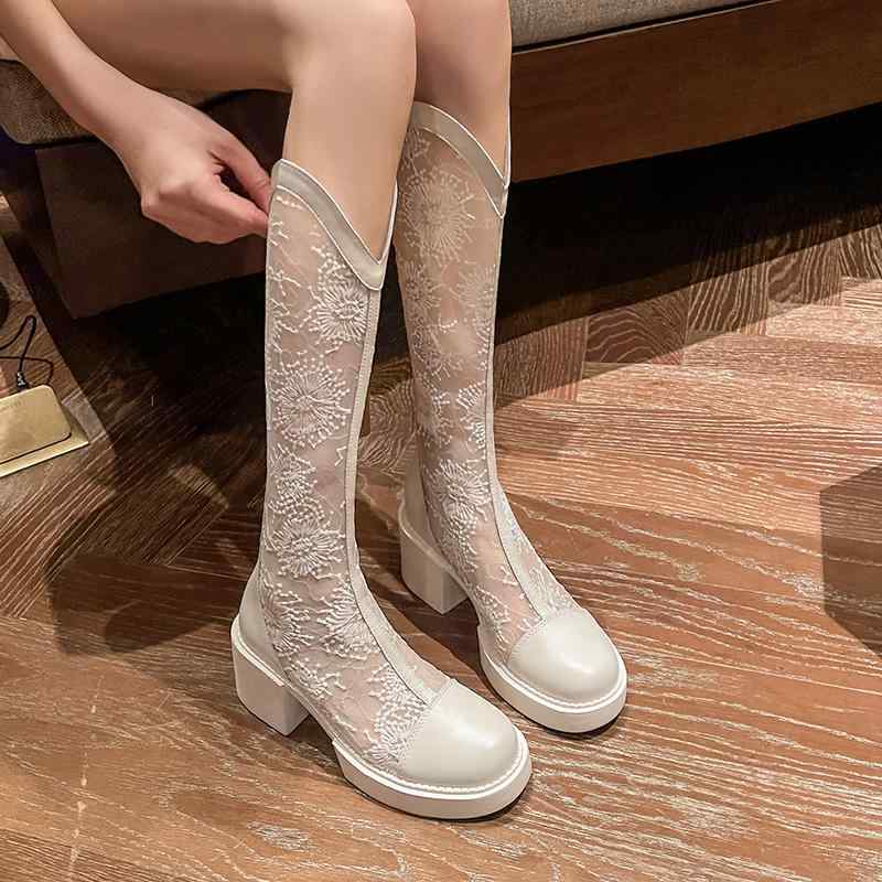 1158. 【予約販売5~12営業日での発送】 ブーツ レディース ブーツ ロングブーツ ハイカット 薄手 夏 通気性 レース メッシュ カットアウト ラウンドトゥ 太ヒール 普段使い カジュアル 白 ・留め具: バックジッパー・サイズ展開: 34, 35, 36, 37, 38, 39・柄: 無地・スタイル: シンプル・筒丈: ロング・要素: くり抜き、プラットフォーム、メッシュ・ヒールの高さ: 5-8cm・カラー展開: ホワイト、ブラック・ブーツの種類: ファッションブーツ・つま先形状: ラウンドトゥ・厚み: 薄手・ヒール形状: 太ヒール・ソール素材: ゴム・アッパー裏地素材: メッシュ・対象: 青年層(18〜40歳)・革の特性: スムースレザー・製法: セメント製法・インソー... 8,459円 税込 送料込 カードOK フロントップ楽天市場店 ![]() | ||