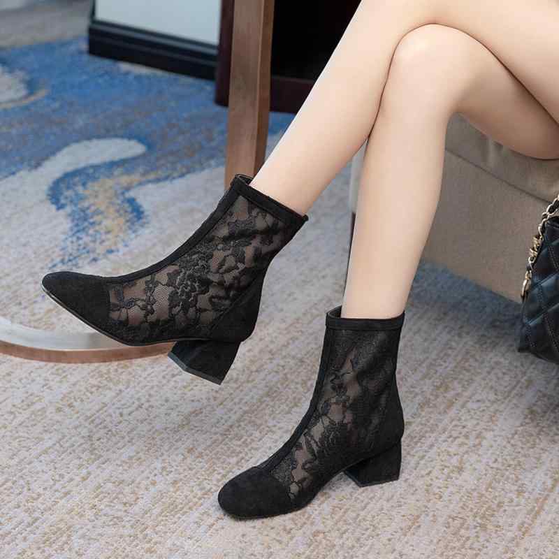 1483. 【予約販売5~12営業日での発送】 サマーブーツ レディース 大きいサイズ フェミニン レース メッシュ シアー チャンキーヒール ショートブーツ 春夏 薄手 太ヒール ラウンドトゥ ブラック 黒 ・留め具: サイドジップ・サイズ展開: 32, 33, 34, 35, 36, 37, 38, 39, 40, 41, 42, 43・柄: 無地・スタイル: フェミニン・筒丈: ショート・要素: メッシュ・ヒール高: ミドルヒール (3〜5cm)・カラー: ブラック・カテゴリ: サンダルブーツ・つま先形状: ラウンドトゥ・厚さ: 通常・ヒール形状: スクエアヒール・靴底素材: TPR (牛筋)・アッパー裏地素材: マイクロファイバー・対象年齢: 18〜40歳・革質: 補正加工革・製法: 縫... 7,947円 税込 送料込 カードOK フロントップ楽天市場店 ![]() | ||