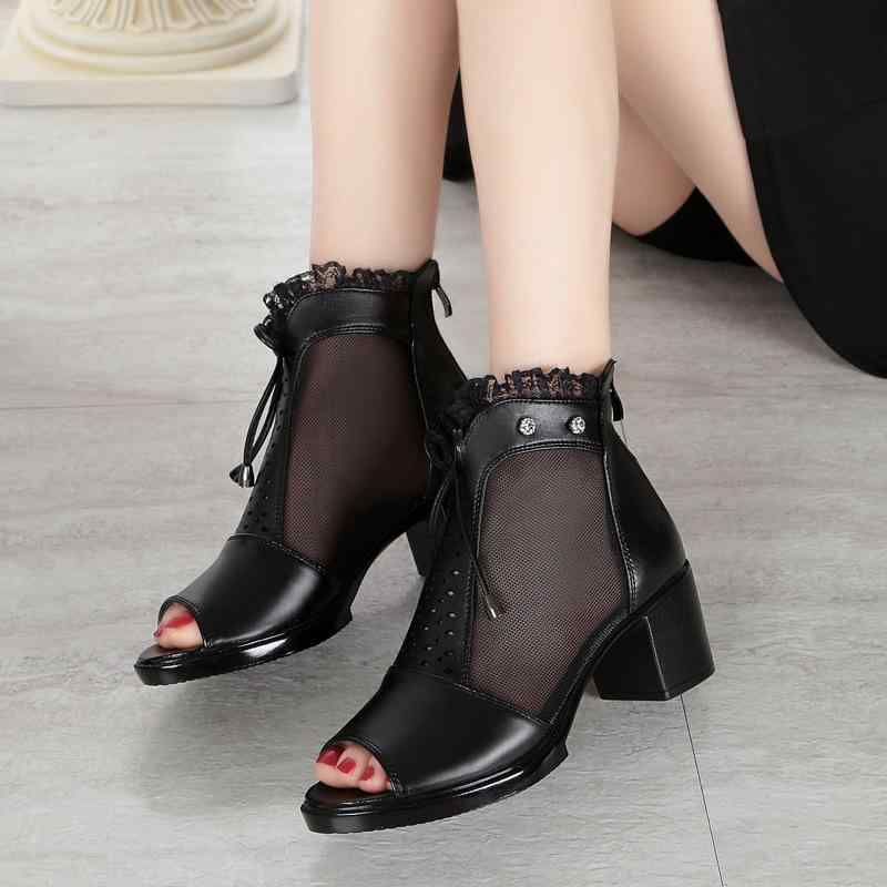 1833. 【予約販売5~12営業日での発送】 メッシュブーツサンダル レディース 女性用 レース ソフトレザー チャンキーヒール ミドルヒール 透かし ママシューズ コンフォート 履きやすい 春夏 カジュアル ・カラー展開: ブラック(クローズトゥ)、ブラック(ピープトウ)・サイズ展開: 35, 36, 37, 38, 39, 40, 41・アッパー素材: 牛革(スエード除く)・つま先形状: ピープトウ・カテゴリ: サンダルブーツ・スタイル: エレガント・ソール素材: 発泡ゴム 7,923円 税込 送料込 カードOK おうち健康生活 ![]() | ||