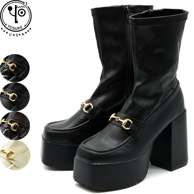 素材・色・高さなど 甲皮の素材 合成皮革 ストレッチ カラー ブラックアイボリーブラックエナメルダークブラウン ストームの高さ 約5.4cm ヒールの高さ 約11cm 片足の重さ 約528g ブランド YOSUKE U.S.A(ヨースケ) 注意 採寸はLです。 ()内表記の普段お履きのローファーサイズをお勧めします。モニターの発色の具合によって実際の商品と色が異なる場合がございますので予めご了承ください。 メーカー希望小売価格はメーカーカタログに基づいて掲載していますブランド紹介: YOSUKE USA ヨースケ よーすけKERA ケラ や KERABOKU ケラボク 等の雑誌に掲載されている人気のシューズブランドです。厚底ブーツ や 厚底パンプス 厚底スニーカー厚底サンダル 等 厚底靴 はゴスロリやゴシック系ロリータ、コスプレ、ヴィジュアル系 V系のファッションにも活用できるシューズです。エンジニアブーツは本革 の レザー のものやダメージ加工を施したビンテージスタイルのものがあり、バイカーファッションの方たちにも好まれています。レースアップブーツやワークブーツはアメカジファッションやカジュアルなスタイルにも適応できます。ラバーソールやマニッシュシューズはUKファッションパンクファッションロックファッションに好まれています。厚底靴ではハイソールやプラットフォーム、ウェッジソールなど様々なテイストのものを用意しています。身長が盛れるスタイルアップアイテムとして人気になっています。スタッズやチェーンなどを使用し、2WAYに出来るのもポイントです。カラーは黒や白、茶色、赤、キャメル、ベージュなどの定番カラーをはじめピンクやイエローなどのコンビカラーのアイテムを作っているのが特徴です。2016年SSよりYOSUKE JAPANとして本革を使用した日本製のアイテムを発表し、トラッドスタイルやクラシックスタイルのママコーデにも愛用されています。SUシーズンより人気のスポーツサンダル スポサンやブーツサンダル ブーサン 厚底サンダル 等が登場しています。ピープス女子 ピープス系 ピープス 原宿 原宿ファッション 原宿女子 インスタ インスタグラム インスタ映え SNS SNS映え 東京 東京ファッションYOSUKE U.S.A ヨースケ ストレッチブーツ 厚底ブーツ チャンキーヒール レディース 商品番号:2820055 ヨースケのストレッチブーツです。 インパクトのあるストームの厚底ヒールがデザインされた厚底ブーツです。 ストレッチ素材を使用しているので柔らかく、履きやすくなっています。 ビット飾りのローファーデザインにストレッチブーツを乗せました。 ストームのある厚底ヒールデザインなのでスタイルアップ出来るアイテムです。 内側サイドファスナーデザインで着脱も簡単です。 ストーム ヒール ブラック ブラウン 茶色 アイボリー 白 黒 9,790円 税込 送料込 カードOK YOSUKE U.S.A LIMITED STORE ![]() | ||