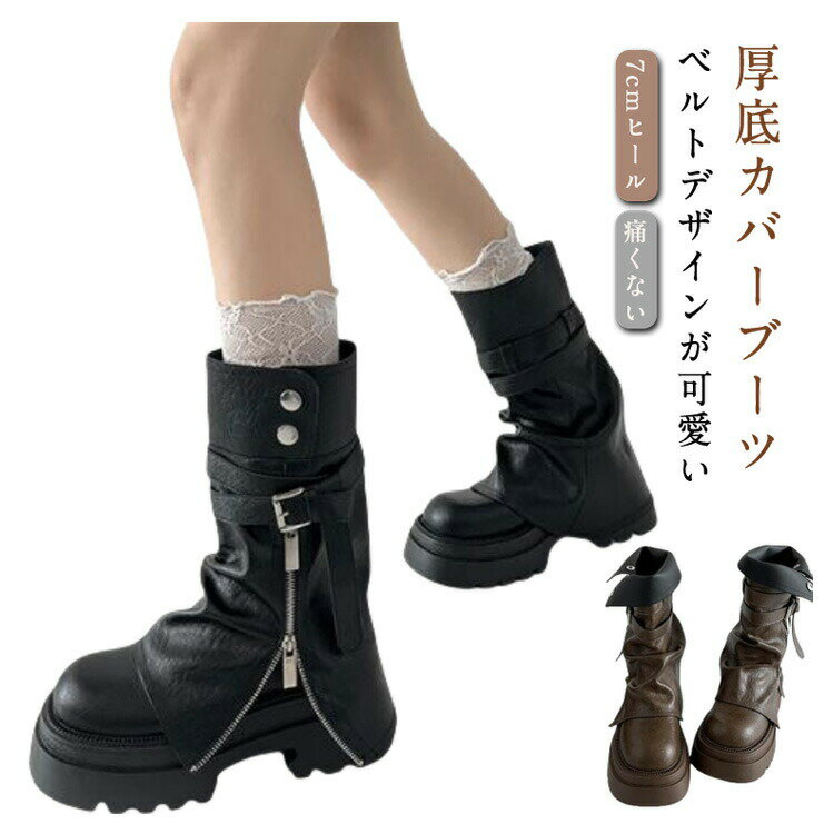 ・商品紹介 スタイル盛れ確定◎ミドル丈厚底カバーブーツ。 今っぽい足元を叶えるボリューム感のある美脚見えブーツ。 ミドル丈だから、ミニボトムにも ロングスカートにもバランス良くマッチします。 カラーはベーシックなブラック・ブラウンの2色展開です。 ※その他商品モデル私物 ・coordinate ミニスカートにルーズソックスで王道韓国ガーリーに。 トレンドライクな膝下ハーフパンツとも相性抜群。 シャカシャカ系パンツでY2Kストリートにもおすすめです。 ・サイズ展開 [35](約22.5cm)甲周り:30cm ヒール:4cm 底幅:10.3cm [36](約23cm)甲周り:30.5cm ヒール:4cm 底幅:10.5cm [37](約23.5cm)甲周り:31cm ヒール:4cm 底幅:10.5cm [38](約24cm)甲周り:31.5cm ヒール:4cm 底幅:10.8cm [39](約24.5cm)甲周り:32cm ヒール:4cm 底幅:11cm ※こちらの靴は中国の工場で大量生産を行っており、お客様に少しでも早くお届けする為に出来上がり次第直ぐに梱包して日本に発送しています。 その為、新品の靴独の臭い、接着剤や塗料の臭い、原料である合成皮革/人工皮革の臭い等がする場合がございます。 もし臭いが気になる場合は、風通しのいい場所で数日陰干しをして頂くか、市販の消臭スプレーや活性炭等をご利用いただく と徐々に臭いは薄れていきます。 ※画像の色味はお使いのパソコンやスマートフォン等モニター環境により実際の色味とは若干異なる場合がございます。 ※商品画像は撮影時の光や角度により、実物の色味と異なって見える場合がございます。 ※撮影はサンプル品を使用しており、表示のサイズ感も実物とは若干異なる場合もございますので、予めご了承ください。 ※生産時期により色・素材・サイズ感・仕様が多少異なる場合がございます。予めご了承ください。 4,980円 税込 送料別 カードOK Iradowl ![]() | ||