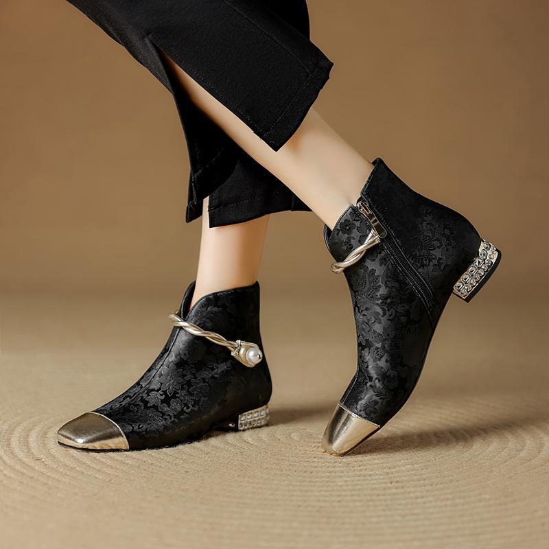 ・スタイル: ユニセックス・筒丈: ショート・アッパー裏地素材: ピッグスキン・サイズ展開: 34, 35, 36, 37, 38, 39, 40・留め具: サイドジップ・アッパー素材: 牛革・ヒール高: 1-3cm・インソール素材: ピッグスキン・つま先形状: スクエアトゥ・ブーツタイプ: ファッションブーツ・カラー展開: ベージュ, ブラック・要素: パール, ラインストーン・ブーツ筒部分素材: 牛革・対象: 青年層(18-40歳)・製法: セメンテッド式・機能: 滑り止め・厚さ: 通常・ヒールタイプ: 太ヒール・ブーツ筒裏地素材: ピッグスキン・ソール素材: TPR (牛筋)・柄: 無地・革の特性: エンボス加工 12,645円 税込 送料込 カードOK フロントップ楽天市場店 ![]() | ||