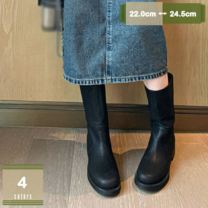 長時間歩いても疲れにくい約3cmのヒールと、足首の切り替え部分はストレッチが利く歩きやすいデザイン。程よいボリューム感を演出してくれながらも、重たくなりすぎず、軽やかな印象のソールで、パンツ・スカートどちらにも合わせやすい、シルエットにこだわった一足。ソール部分を一回り大きめにしてクールな印象を取り入れながら、足首部分まである少し長めの丈感に、トゥの部分はラウンド型を採用した女性らしいデザインで、大人っぽくキレイ魅せしてくれます。メインに使用した艶のある合皮素材もポイント。足首部分はストレッチ素材を使用し、程よくフィットして細見え効果も◎こちらはアウトレット品です。主にはシーズン落ちの新品になりますが、中には細かな傷やシワ、若干の色落ち等がある場合がございます(訳あり品を除く)。M/23.5cm : 【重さ】386g / 【ヒール寸】3cm / 【プラットフォーム高さ】2cm / 【筒丈】17cm / 【筒周り】23cm別カラーはこちら! ブラック 2,237円 税込 送料別 カードOK LOCOMALL(ロコンド公式ストア) ![]() | ||