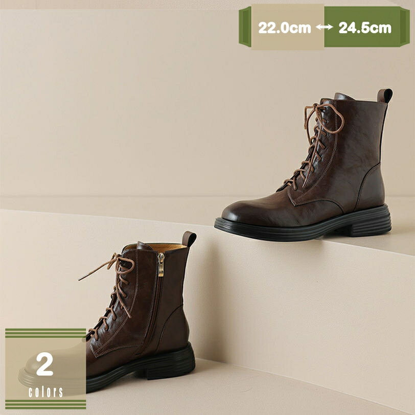 表地:合皮メイン素材:合皮【カラー】:ブラック カーキ ベージュ ブラウン【メイン素材】:合成皮革・底面素材:合成ゴム 【サイズ(女性)】:22.0cm、22.5cm、23.0cm、23.5cm、24.0cm、24.5cm、25.0cm、25.5cm、26.0cm、26.5cmつまさきの形が丸いラウンドトゥで、ゆったり優しい履き心地で、長時間歩いても痛くなりにくいレディースブーツです。柔軟性があり足に優しくフィットしてくれるので、快適な履き心地を実感でき、滑りにくい加... 8,735円 税込 送料込 カードOK まいすこ 楽天市場店 ![]() | ||