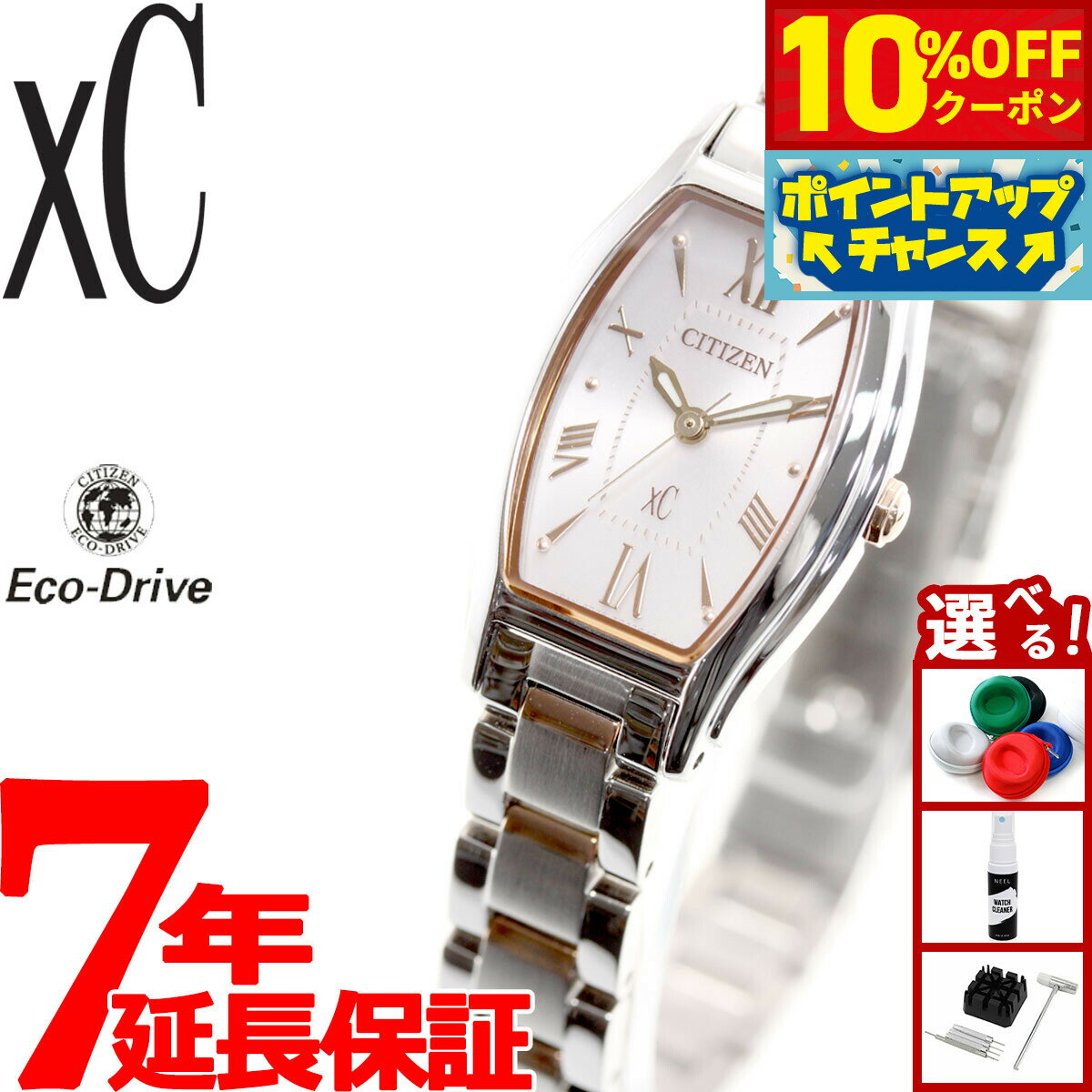 前を向く女性を応援する、シチズン クロスシー。華奢でエレガントな長角ケースが魅力のエコ・ドライブの新モデルが登場。華奢でエレガントな長角ケース。ケースサイドのフローラインがしなやかな女性らしさを表現しています。文字板のインデックスはやわらかいローマフォントを採用。甘すぎず、年齢問わずお使い頂けるデザインに仕上げています。手持ちのアクセサリーやご自身の肌色に合わせて選べる、4種類のバリエーションが魅力です。3針・夜光針を採用。時間の見やすさにも配慮した実用的なモデルです。付属のツールで簡単にバンド調整ができるシンプルアジャスト仕様。ギフトにも最適です。商品名シチズン クロスシー エコドライブ 腕時計 レディース ステンレススチールライン CITIZEN xC EW5544-51W商品番号EW5544-51Wブランドシチズン クロスシー CITIZEN xCムーブメントエコ・ドライブ キャリバー:B035精度:平均月差±15秒光発電:フル充電時約7ヶ月可動秒針停止機能充電警告機能過充電防止機能5気圧防水夜光(針)風防素材カーブサファイアガラスケース素材ステンレス(白色めっき)デュラテクトPTICケースサイズ25×19.5mmケース厚7.6mmバンド素材ステンレス(白色めっき+ピンクゴールドめっき)デュラテクトPTICバンド留金タイプ三つ折れプッシュタイプ文字盤カラーピンク保証期間メーカー1年間保証付属保証書 / 専用BOXその他のサービスメーカー希望小売価格はメーカーサイトに基づいて掲載しています シチズン クロスシー エコドライブ 腕時計 レディース ステンレススチールラインCITIZEN xC EW5544-51W 正規品 クリックで画像拡大クリックで画像拡大クリックで画像拡大クリックで画像拡大クリックで画像拡大クリックで画像拡大クリックで画像拡大クリックで画像拡大クリックで画像拡大クリックで画像拡大クリックで画像拡大クリックで画像拡大クリックで画像拡大 クロスシー エコ・ドライブEW5540-52AEW5542-57AEW5543-54AEW5544-51W 45,000円 税込 送料込 カードOK レビュー43件 neelセレクトショップ ![]() | ||