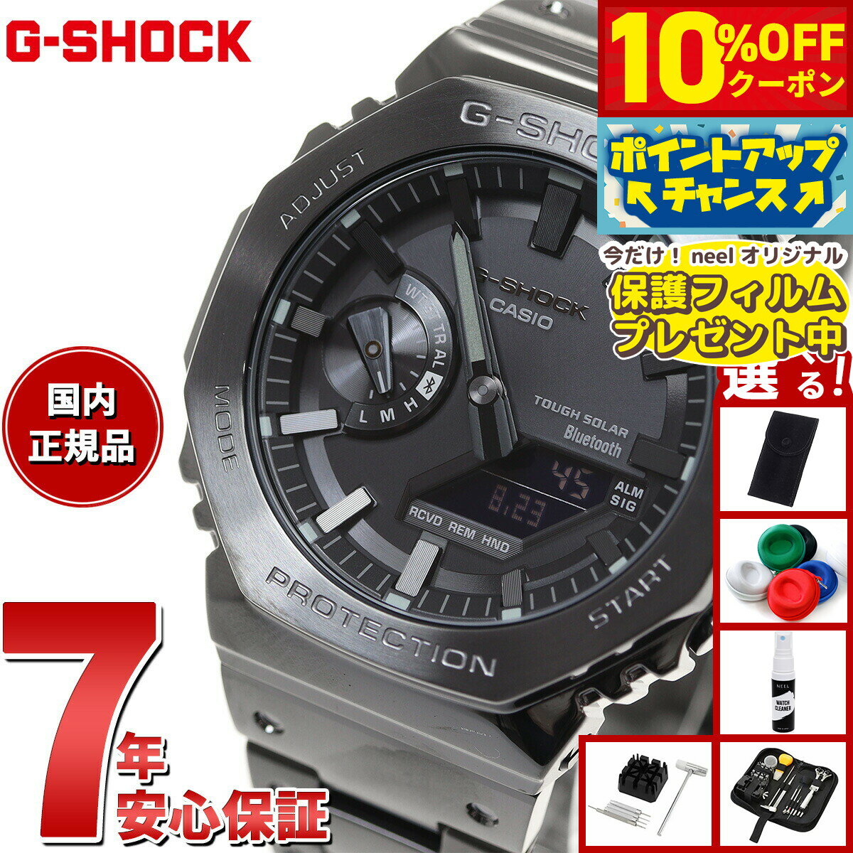 G-SHOCK初代モデルDW-5000Cのコンセプトを受け継いで開発されたデジタル/アナログコンビ「GA-2100」シリーズにスマートフォンリンクを搭載したフルメタルモデルです。スクリューバックケース、ベゼル、バンドにステンレスを採用し、落下時の衝撃からモジュールを守る耐衝撃構造をとりながらも、無駄を省いたシンプルなデザインを目指しました。1983年に誕生した“DW-5000C”にも採用された八角形のベゼル形状や、バンドのディンプルデザインも継承しています。高密度実装技術によりスリムで高機能なモジュー... 74,800円 税込 送料込 カードOK レビュー162件 neelセレクトショップ ![]() | ||
