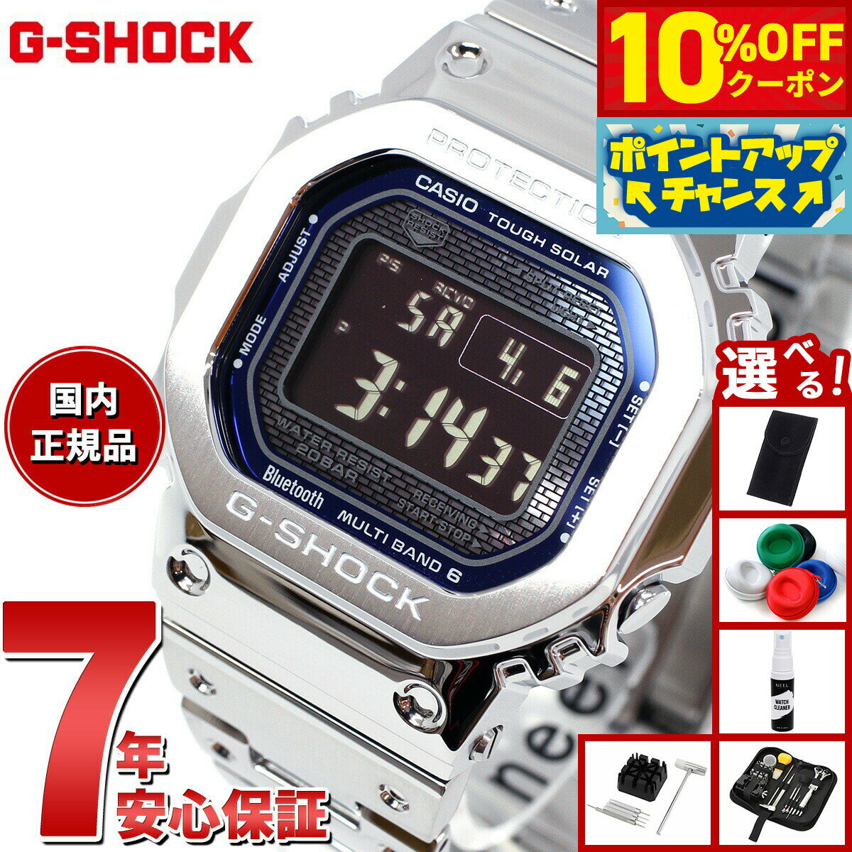 1983年の誕生以来タフネスを追求するG-SHOCKから、フェイスに鮮やかなブルーを採用したフルメタルシリーズです。文字板のガラス面にメタリックブルーの蒸着加工を施すことで、ステンレス製のベゼルとバンドに調和させています。フルメタルによる耐衝撃構造を実現するために、ベゼルとケースの間には、ファインレジン製の緩衝材を実装。また、バンド接続部を3本足構造とし、連結パイプに加わる衝撃を分散。メタル製のバンドピースにディンプル加工を施し、初号機の樹脂バンドデザインを継承しました。裏蓋には、気密性に優れたスクリューバックを採用しています。ステンレス製のベゼルは、手間のかかる鍛造・切削・研磨加工を経て、立体的に成形し、天面をヘアライン、斜面をミラー研磨で美しく仕上げています。商品名G-SHOCK カシオ Gショック CASIO GMW-B5000D-2JF タフソーラー 電波時計 腕時計 メンズ フルメタル シルバー メタリックブルー スマートフォンリンク商品番号GMW-B5000D-2JFブランドカシオ Gショック CASIO G-SHOCKムーブメントデジタル ソーラー電波時計 モジュールNo:3539■耐衝撃構造■タフソーラー(ソーラー充電システム)■20気圧防水機能■電波受信機能:自動受信(最大6回/日)(中国電波は最大5回/日)/手動受信、<日本>受信電波:JJY、周波数:40kHz/60kHz(福島/九州両局対応モデル)<北米地域>受信電波:WWVB、周波数:60kHz<ヨーロッパ地域>受信電波:MSF/DCF77、周波数:60kHz/77.5kHz<中国>受信電波:BPC、周波数:68.5kHz*ホームタイム設定を受信可能な都市に設定すると、都市に合わせた局を受信します。尚、時差は選択した都市によって設定されます。■モバイルリンク機能(対応携帯電話とのBluetooth®通信による機能連動)■ワールドタイム5本:世界39都市(39タイムゾーン、サマータイム自動設定機能付き)+UTC(協定世界時)の時刻表示、ホームタイムの時刻入替機能付き■ストップウオッチ(1/100秒(1時間未満)/1秒(1時間以上)、24時間計、スプリット付き)■タイマー(セット単位:1秒、最大セット:24時間、1秒単位で計測)■時刻アラーム5本(1本のみスヌーズ機能付き)・時報■バッテリー充電警告機能■パワーセービング機能(暗所では一定時間が経過すると表示を消して節電します)■フルオートカレンダー■12/24時間制表示切替■操作音ON/OFF切替機能■日付表示(月/日表示入替)■曜日表示(英・西・仏・独・伊・露の6ヵ国語切替)■LEDバックライト(フルオートライト、スーパーイルミネーター、フェードイン・フェードアウト、残照機能、残照時間切替(2秒/4秒)付き)■フル充電時からソーラー発電無しの状態での駆動時間機能使用の場合:約10ヵ月パワーセービング状態の場合:約22ヵ月※電波受信が行われない場合や、スマートフォンと連携しない場合は、通常のクオーツ精度(平均月差±15秒)で動作します。CASIO WATCHES(無料):■自動時刻修正■簡単時計設定■ワールドタイム約300都市+オリジナルポイント■タイム&プレイス■リマインダー■携帯電話探索※スマートフォンと通信接続を行うには、専用アプリ「CASIO WATCHES」のインストールが必要です。メーカー指定のiPhone、Androidスマートフォンに対応しています。動作確認済み端末やOS対応状況など、詳しくはWEBにてご確認ください。※Bluetoothが搭載されている端末に限ります。ショックレジストスクリューバックLED:ホワイトケース:IP処理バンド装着可能サイズ:150〜205mm第一駒幅:26mmバンドアジャスト:バネ棒タイプ風防素材無機ガラスケース素材ステンレススチールケースサイズ49.3×43.2mmケース厚13mmバンド素材ステンレスムクバンドバンド留金タイプワンプッシュ三つ折れ式中留腕周り(最大)20.5cm文字盤カラーブラック本体重量167g保証期間メーカー正規保証1年間付属取扱説明書 / 保証書 / 専用BOXその他のサービスメーカー希望小売価格はメーカーサイトに基づいて掲載していますG-SHOCK カシオ Gショック CASIO GMW-B5000D-2JF タフソーラー 電波時計 腕時計 メンズ フルメタル シルバー メタリックブルー スマートフォンリンク 1983年の誕生以来タフネスを追求するG-SHOCKから、フェイスに鮮やかなブルーを採用したフルメタルシリーズです。文字板のガラス面にメタリックブルーの蒸着加工を施すことで、ステンレス製のベゼルとバンドに調和させています。フルメタルによる耐衝撃構造を実現するために、ベゼルとケースの間には、ファインレジン製の緩衝材を実装。また、バンド接続部を3本足構造とし、連結パイプに加わる衝撃を分散。メタル製のバンドピースにディンプル加工を施し、初号機の樹脂バンドデザインを継承しました。裏蓋には、気密性に優れたスクリューバックを採用しています。ステンレス製のベゼルは、手間のかかる鍛造・切削・研磨加工を経て、立体的に成形し、天面をヘアライン、斜面をミラー研磨で美しく仕上げています。 67,760円 税込 送料込 カードOK レビュー50件 neelセレクトショップ ![]() | ||